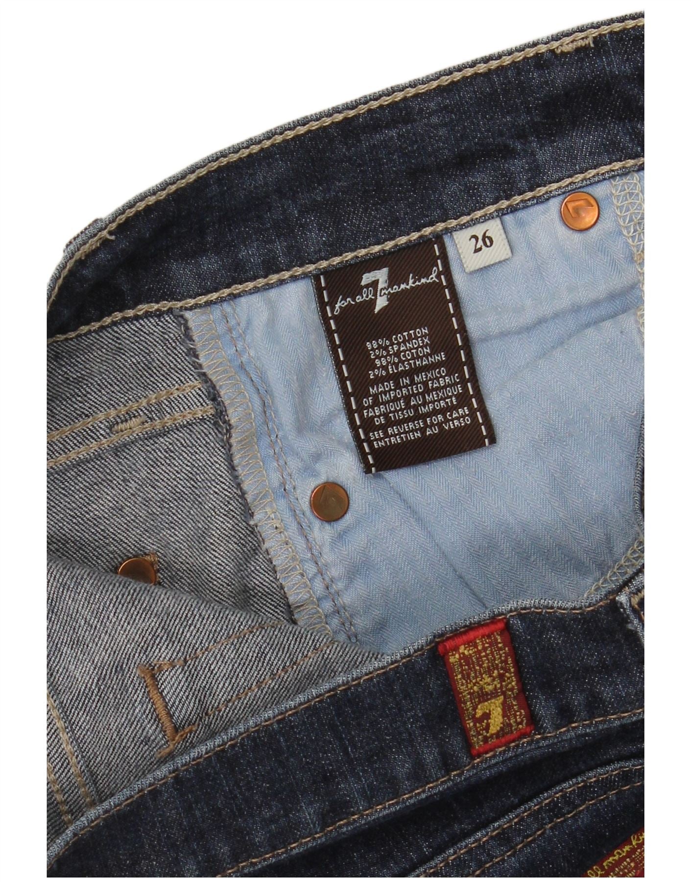 7 FOR ALL MANKIND Womens ROXANNE Skinny Jeans W26 L30 Navy Blue Cotton