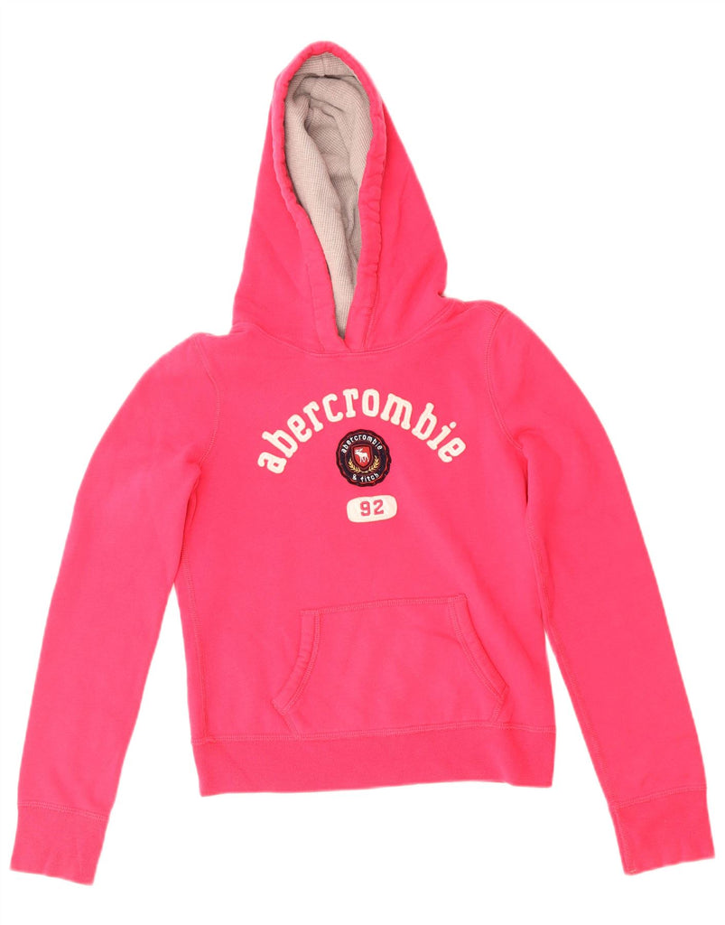 ABERCROMBIE & FITCH Girls Graphic Hoodie Jumper 13-14 Years XL Pink Cotton