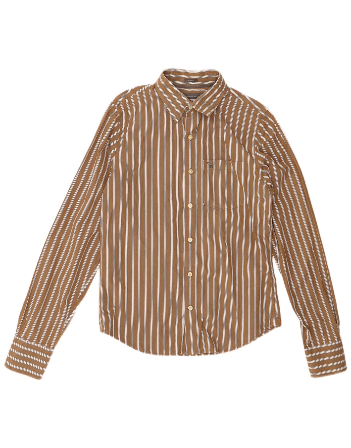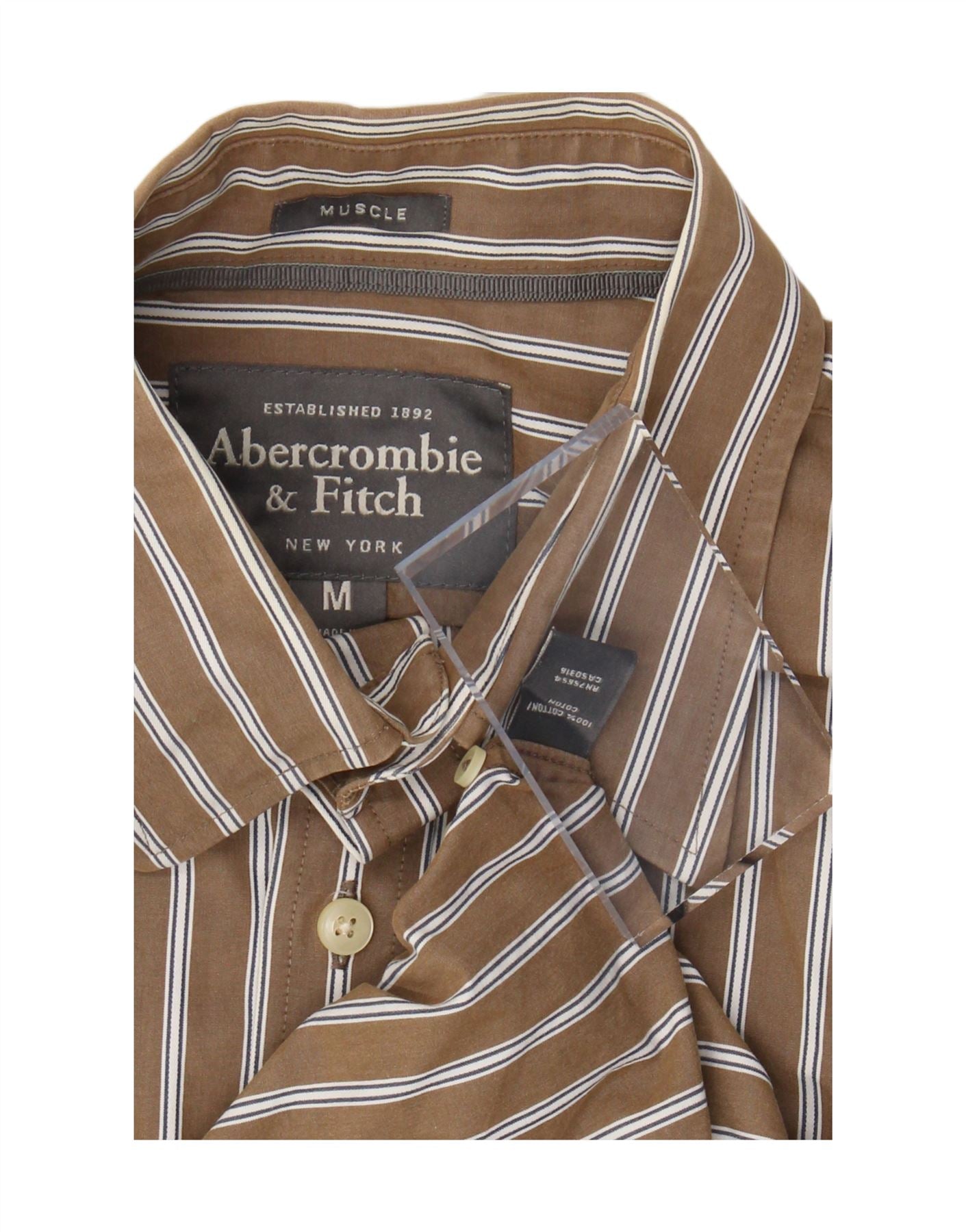 ABERCROMBIE & FITCH Ανδρικό Μυώδες Πουκάμισο Μεσαίο Καφέ Βαμβακερό ριγέ