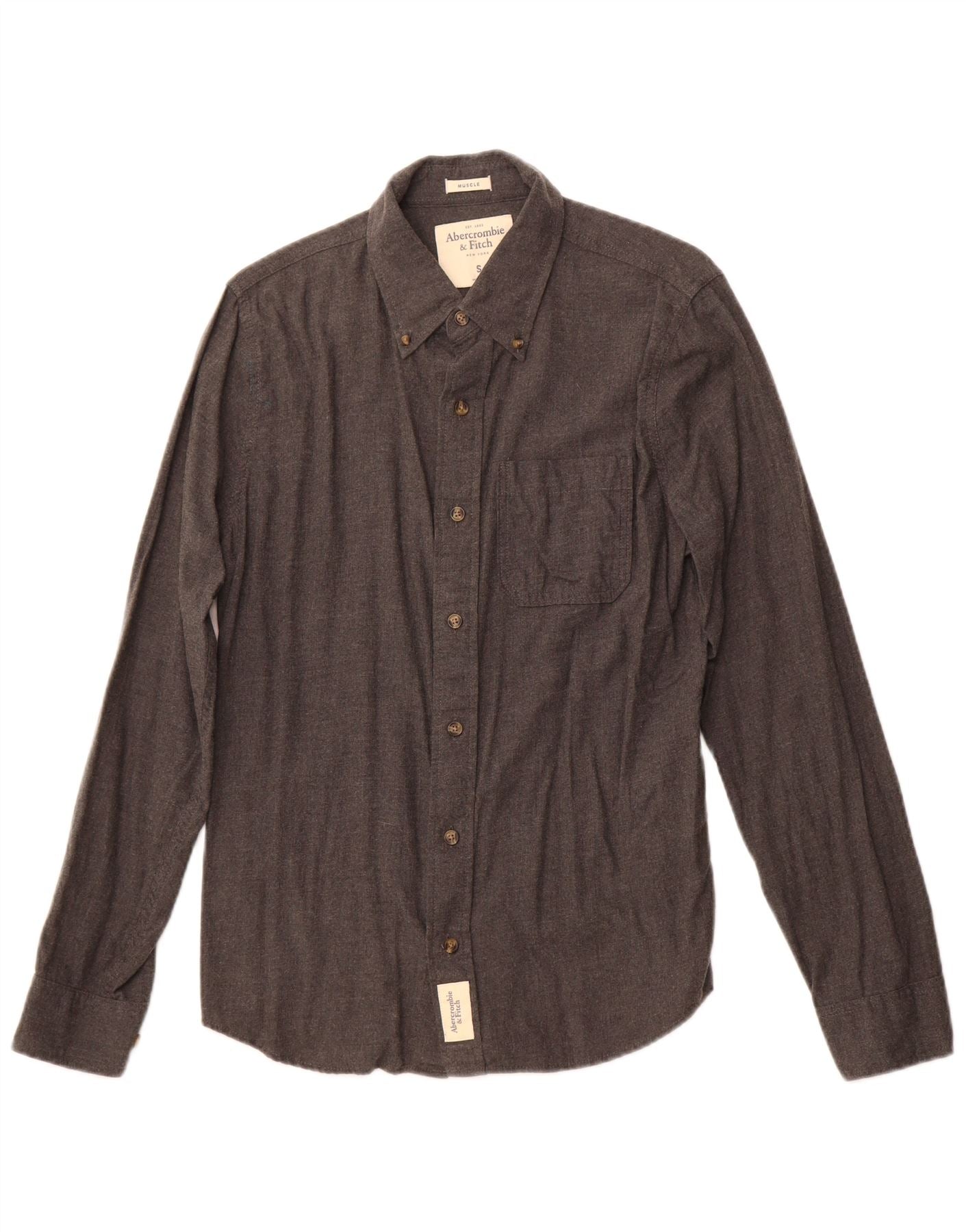 ABERCROMBIE & FITCH Ανδρικό Μυώδες Πουκάμισο Μικρό Γκρι Βαμβακερό