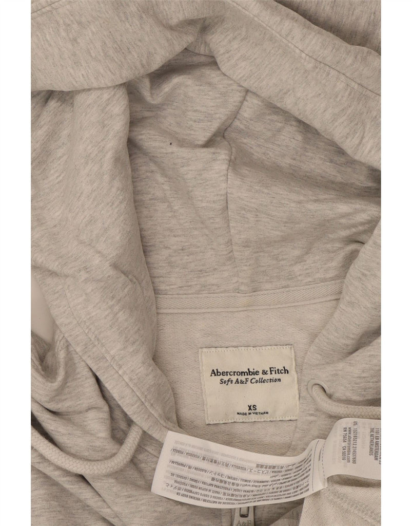 ABERCROMBIE & FITCH Womens Crop Zip Hoodie Sweater UK 6 XS Grey Flecked