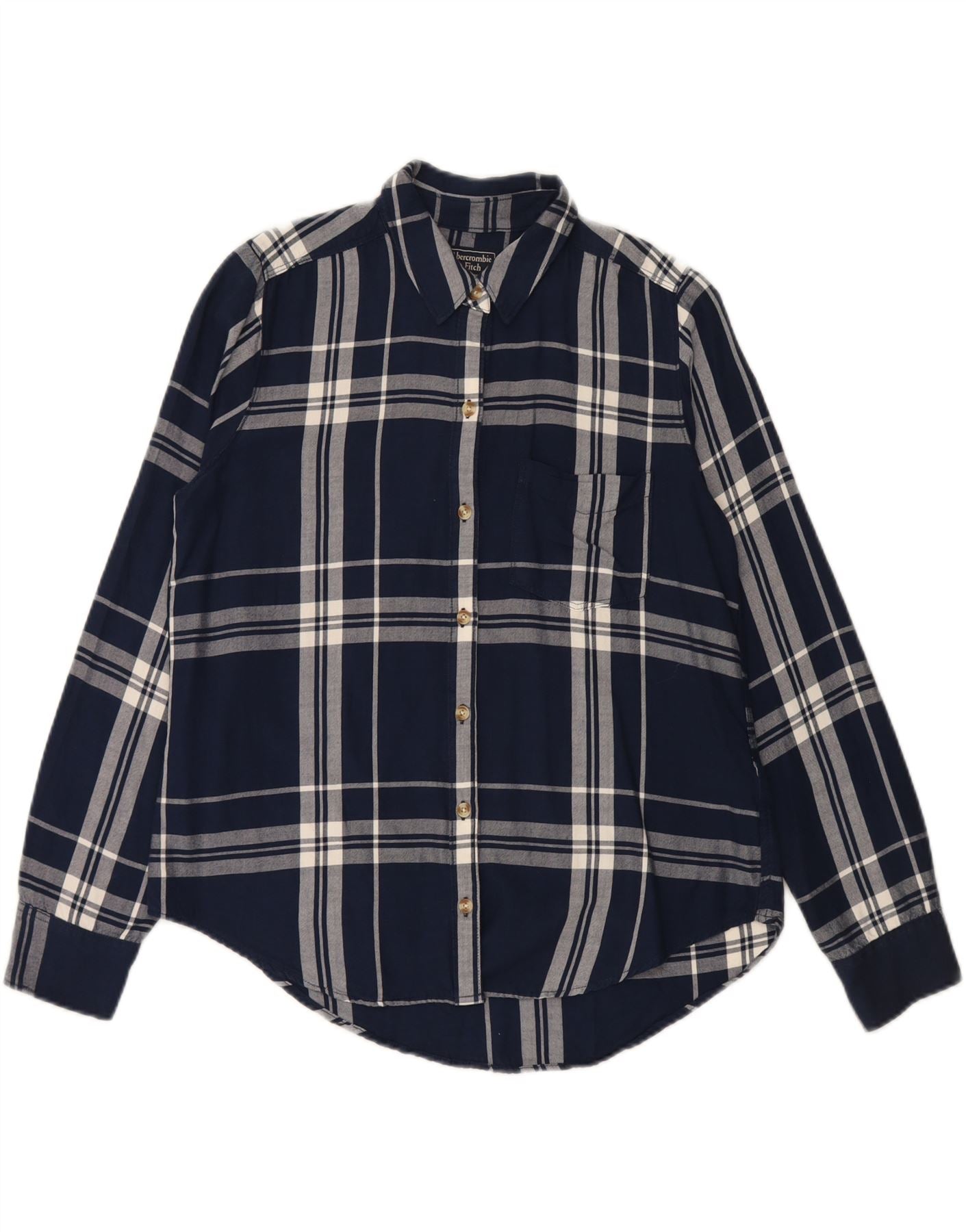 ABERCROMBIE & FITCH Womens Flannel Shirt UK 14 Medium Navy Blue Check