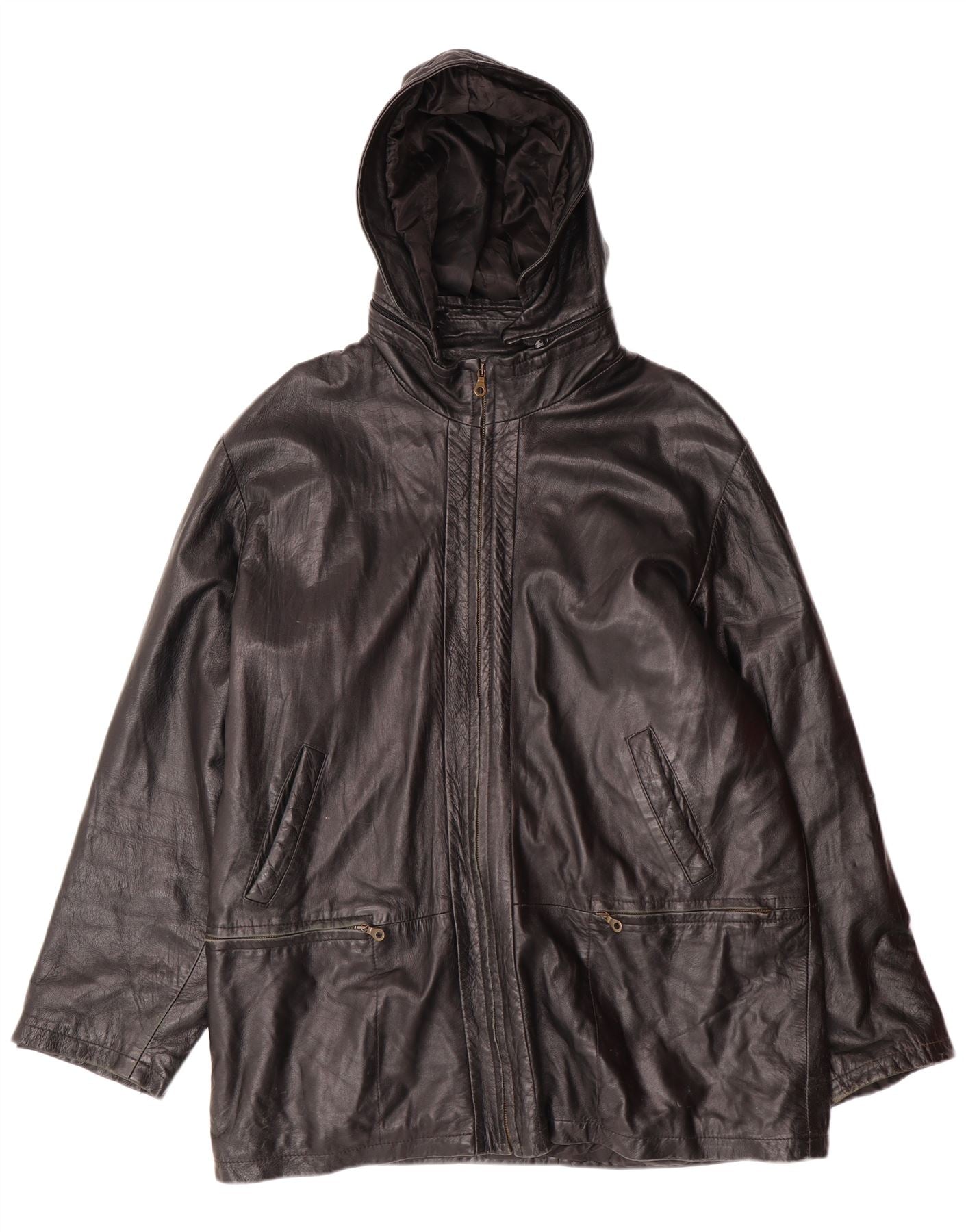ACTIVE Ανδρικό Δερμάτινο Μπουφάν με Κουκούλα IT 52 XL Μαύρο Δερμάτινο