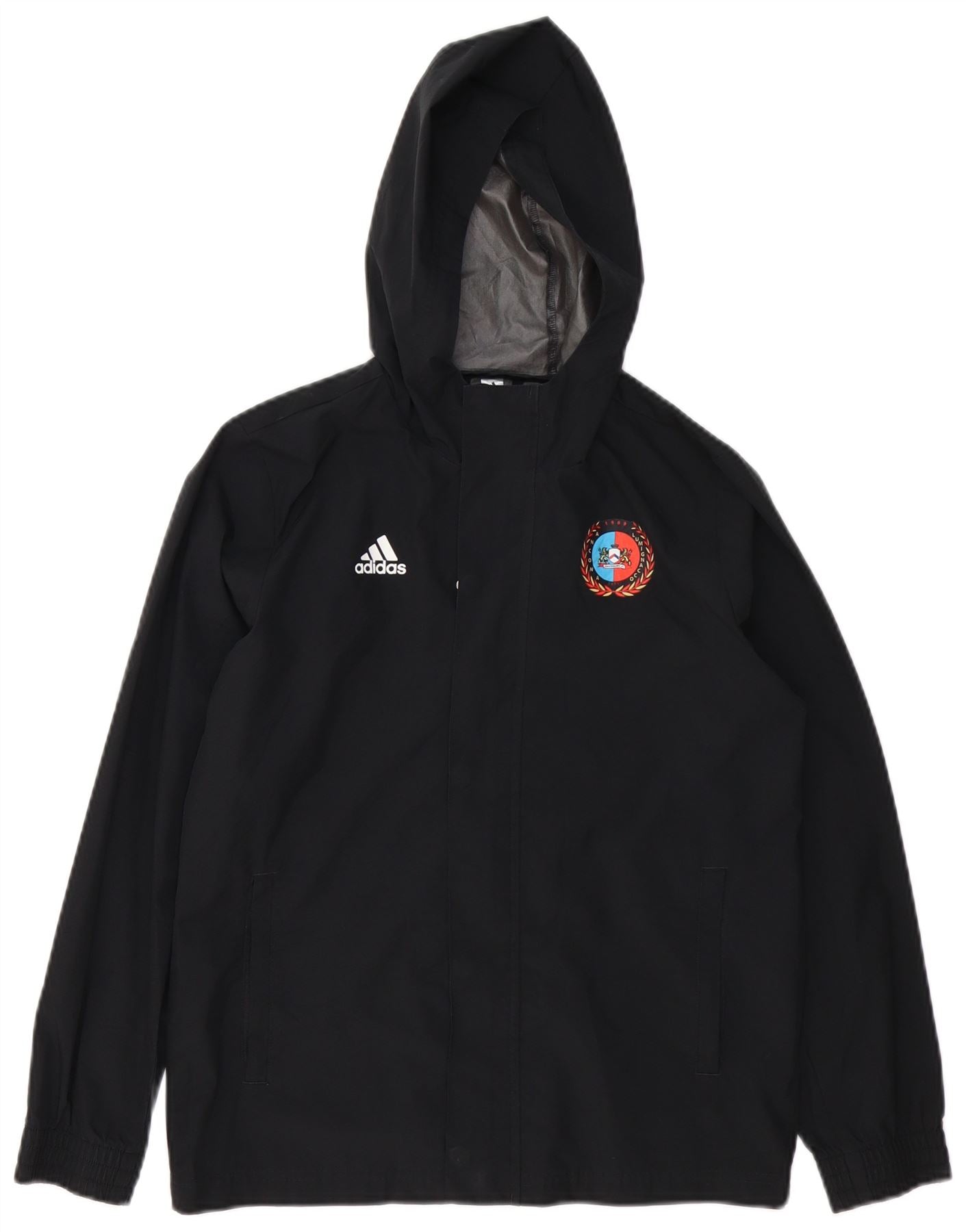 ADIDAS Boys Ancona γραφικό μπουφάν βροχής με κουκούλα 11-12 ετών μαύρο πολυεστέρα