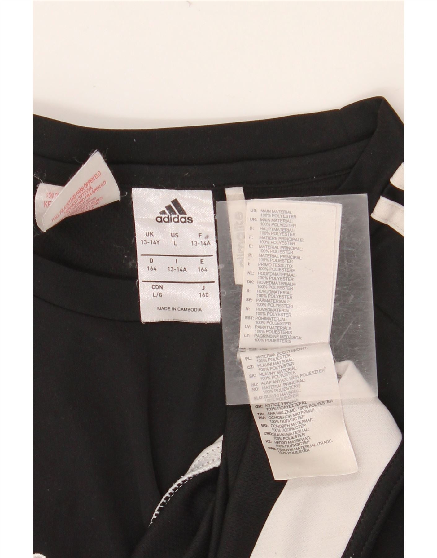 ADIDAS Boys Climalite T-Shirt Top 13-14 Years Black Colourblock Polyester