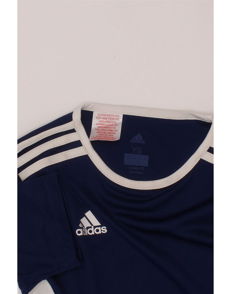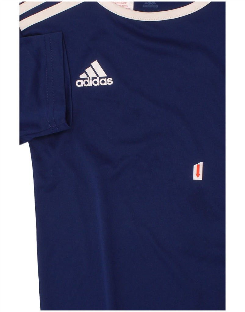 ADIDAS Boys Climalite T-Shirt Top 9-10 Years Small Navy Blue Colourblock