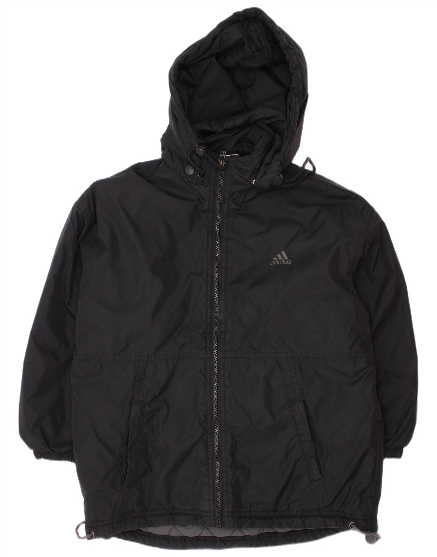 Γραφικό μπουφάν ADIDAS Boys με κουκούλα με επένδυση 8-9 ετών μαύρο πολυαμίδιο