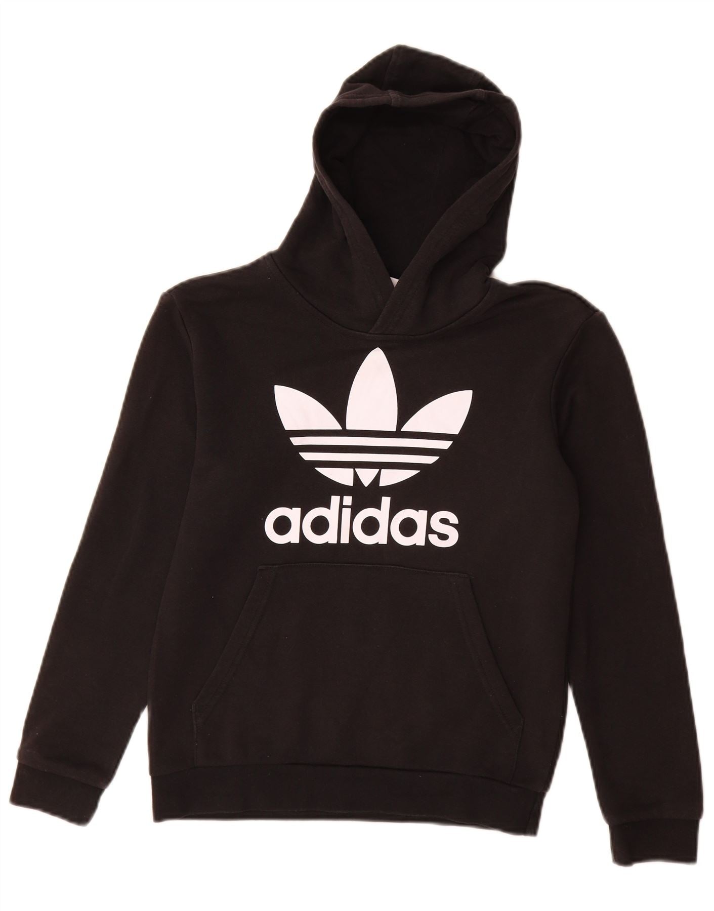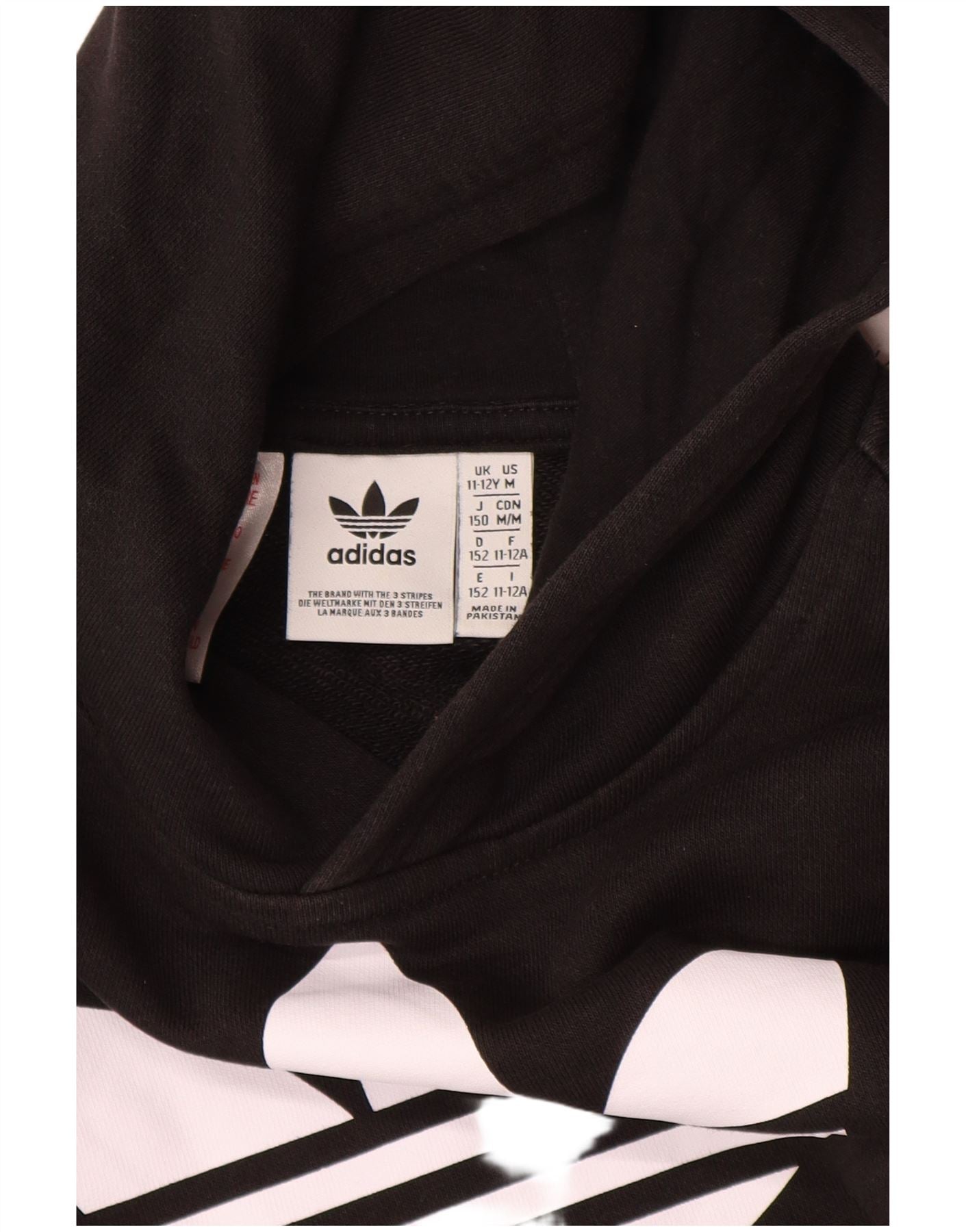 ADIDAS Boys Graphic Hoodie Jumper 11-12 Years Black Cotton