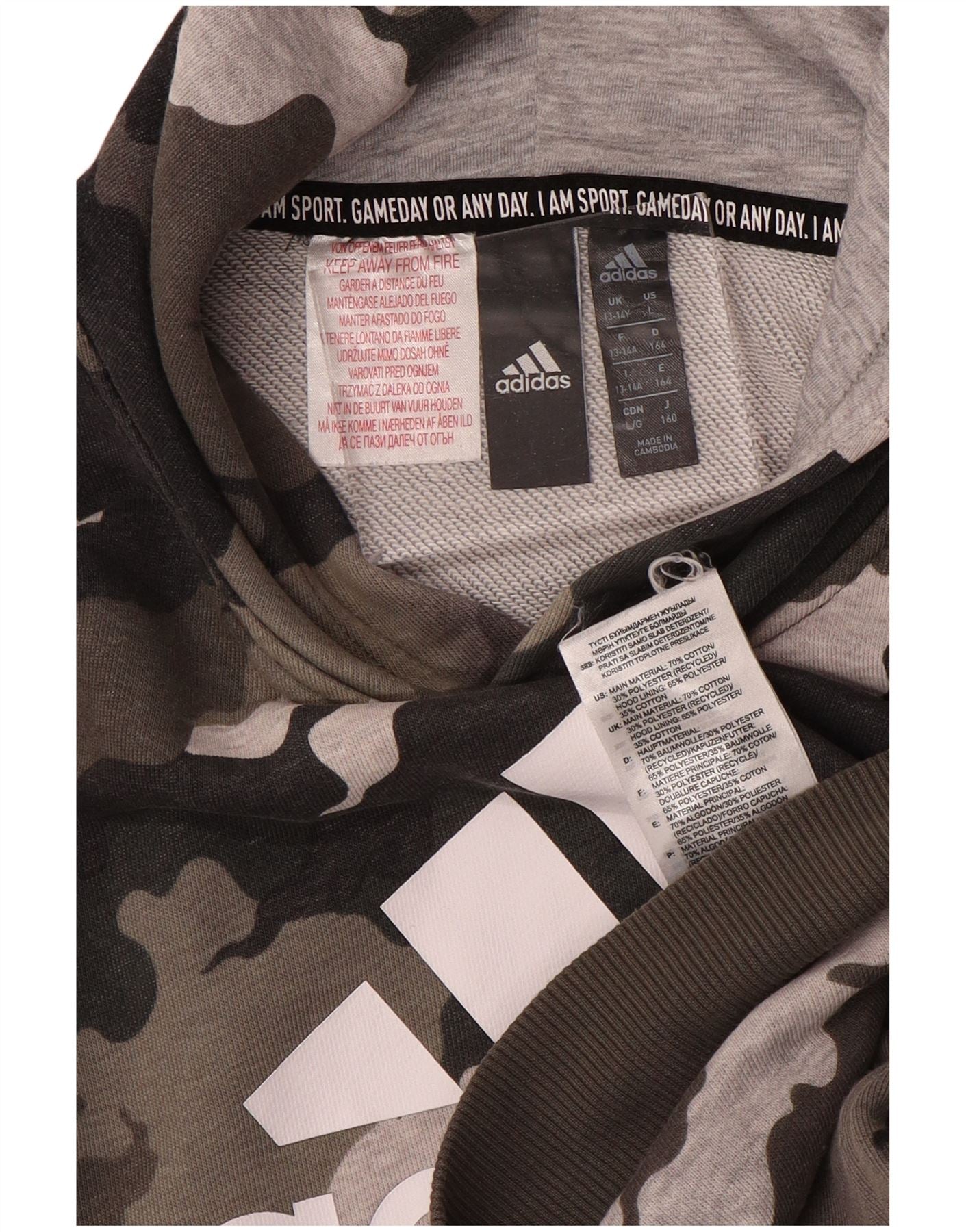 ADIDAS Boys Graphic Hoodie Jumper 13-14 ετών Καφέ βαμβακερό καμουφλάζ