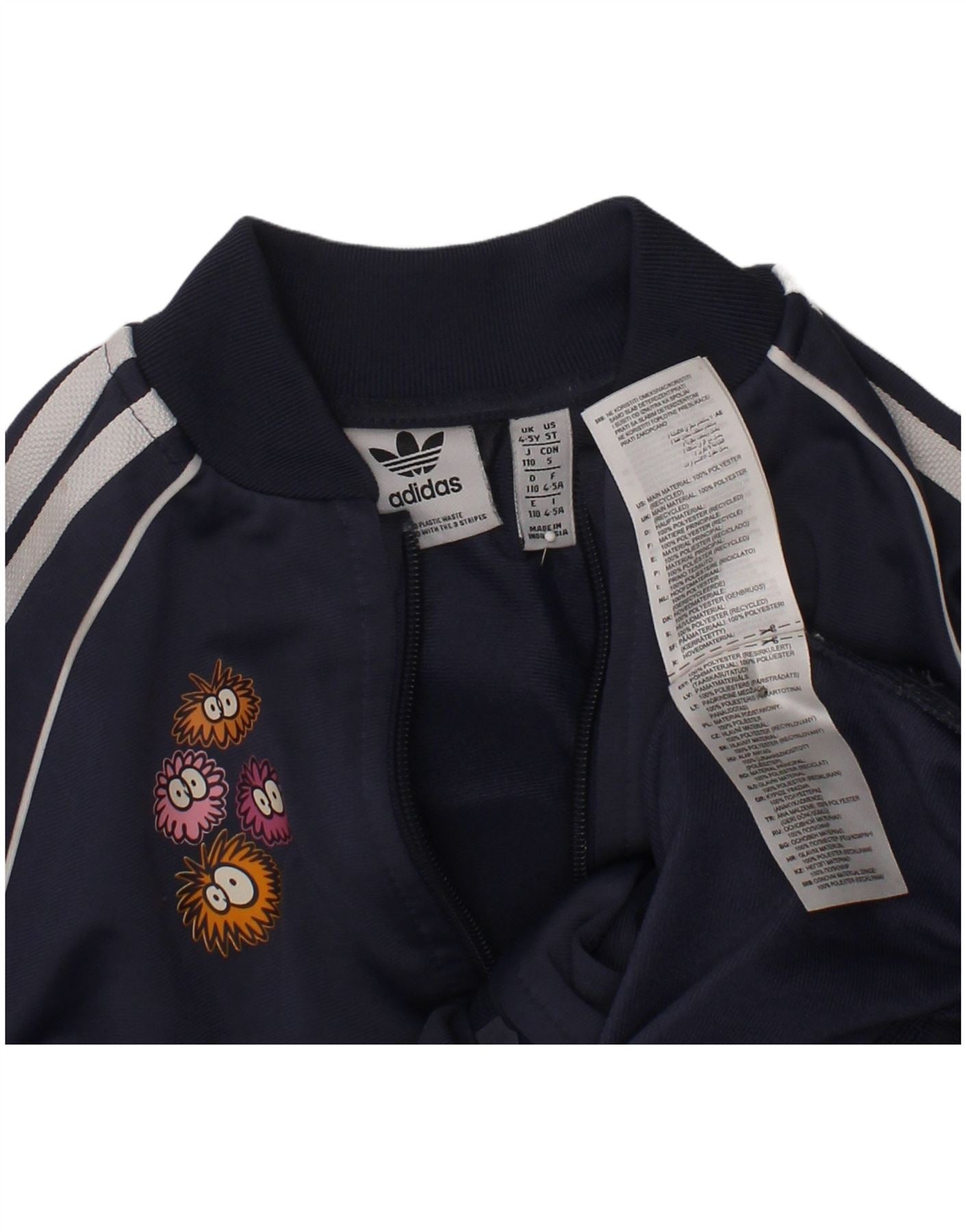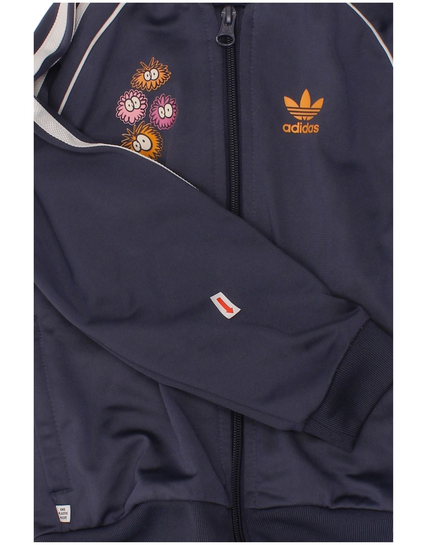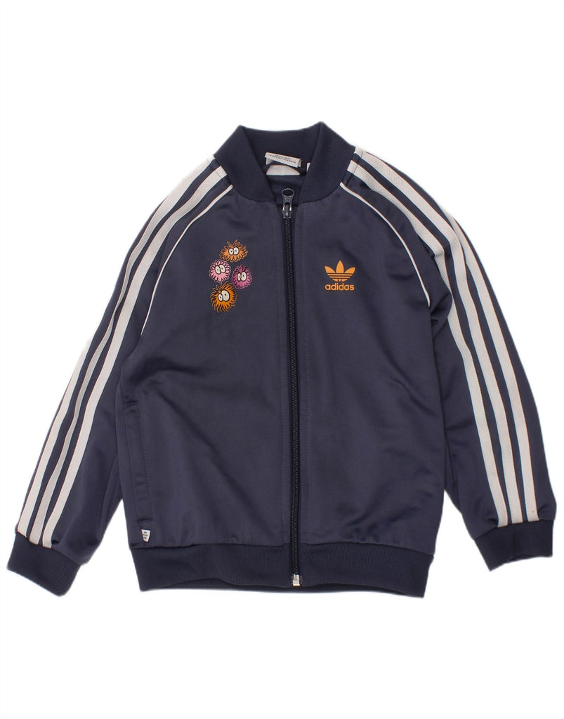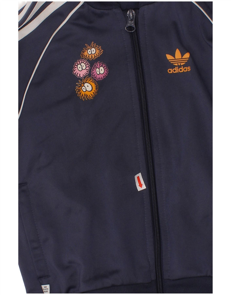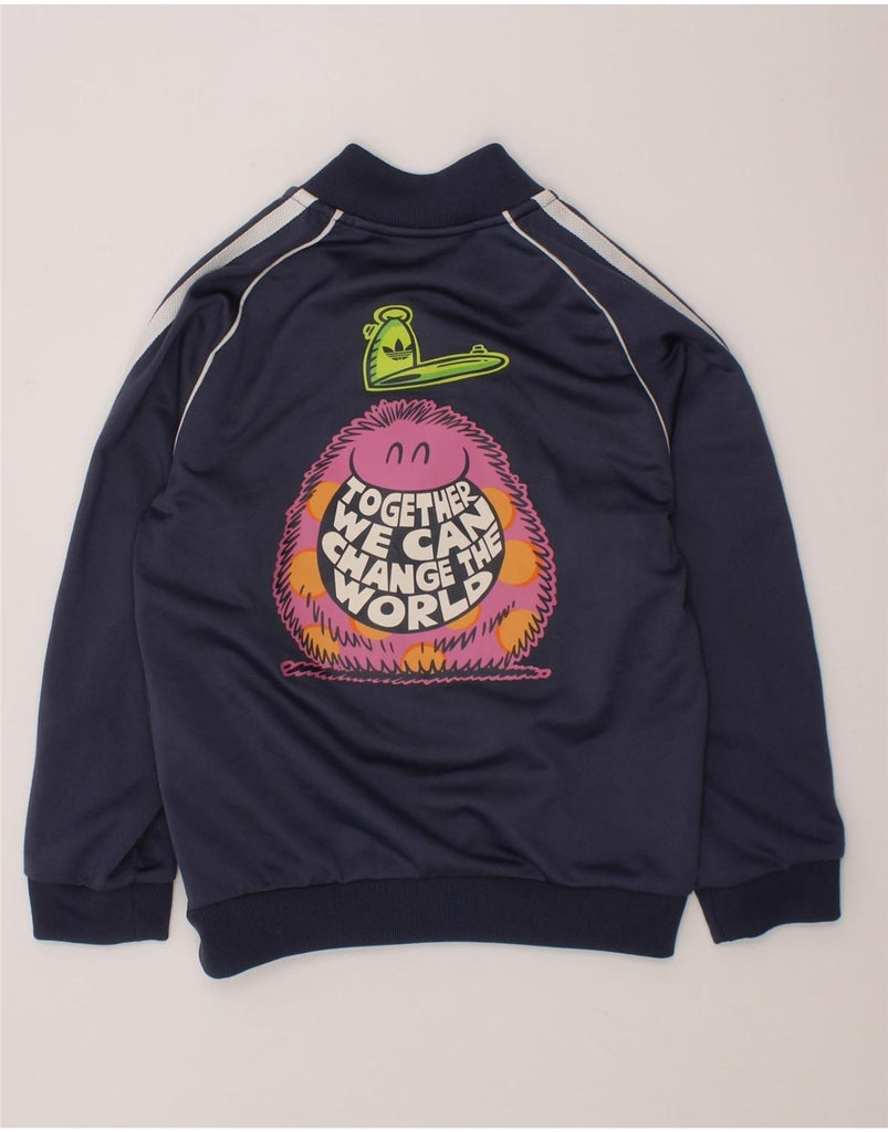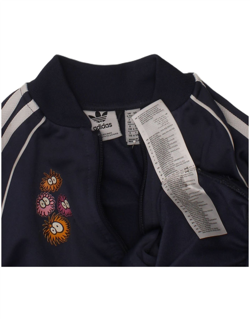 ADIDAS Boys Graphic Tracksuit Top Jacket 4-5 Years Navy Blue Polyester