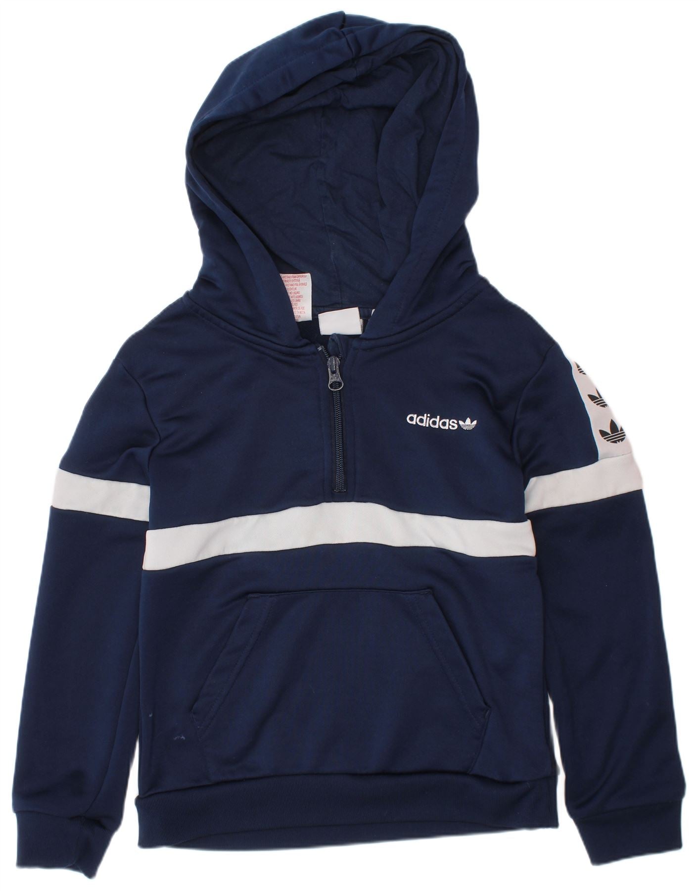 Γραφικό μπλουζάκι με κουκούλα με φερμουάρ ADIDAS Boys 7-8 ετών Navy Blue Colorblock