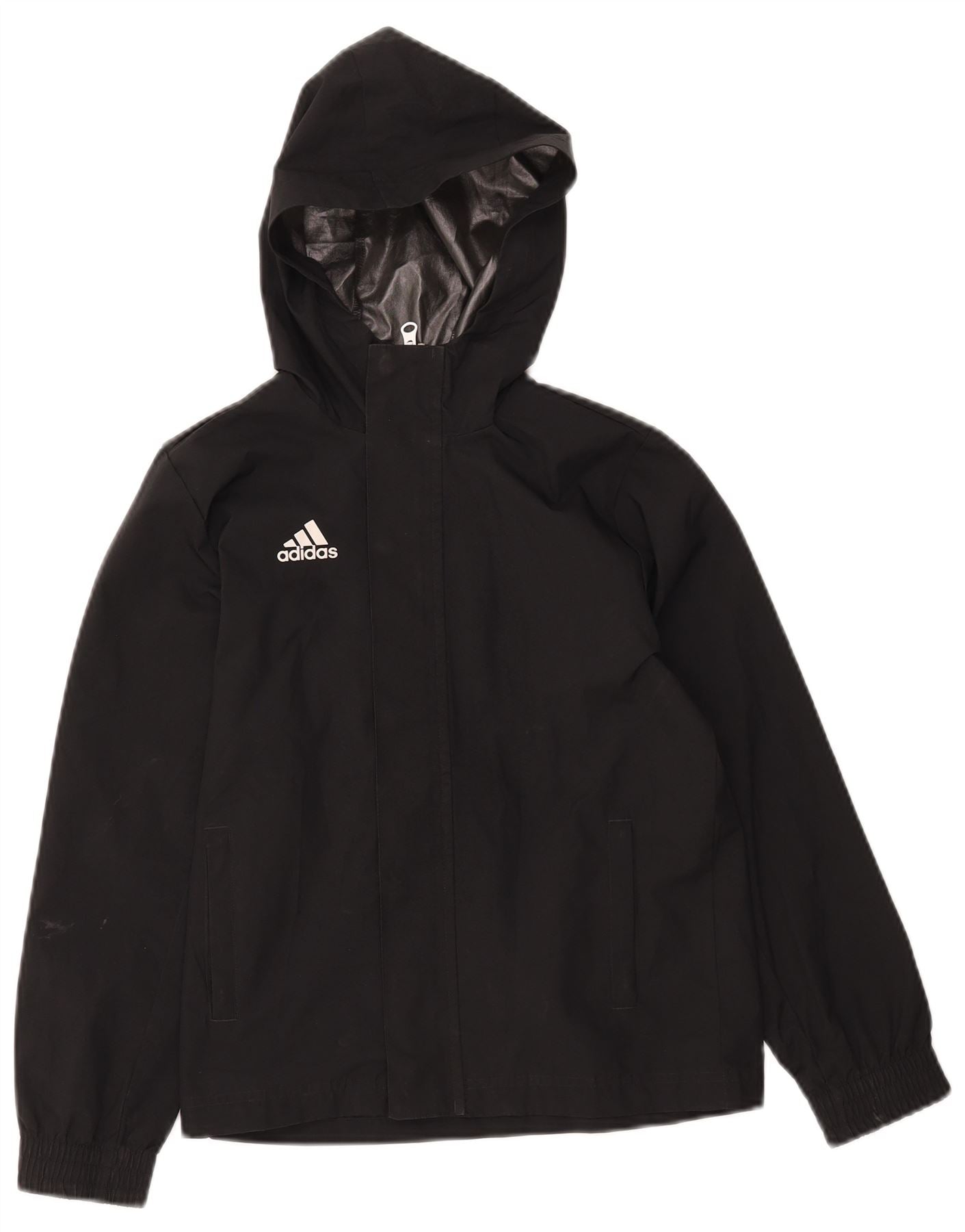 ADIDAS Boys Hooded Windbreaker Jacket 9-10 Years Black Polyester