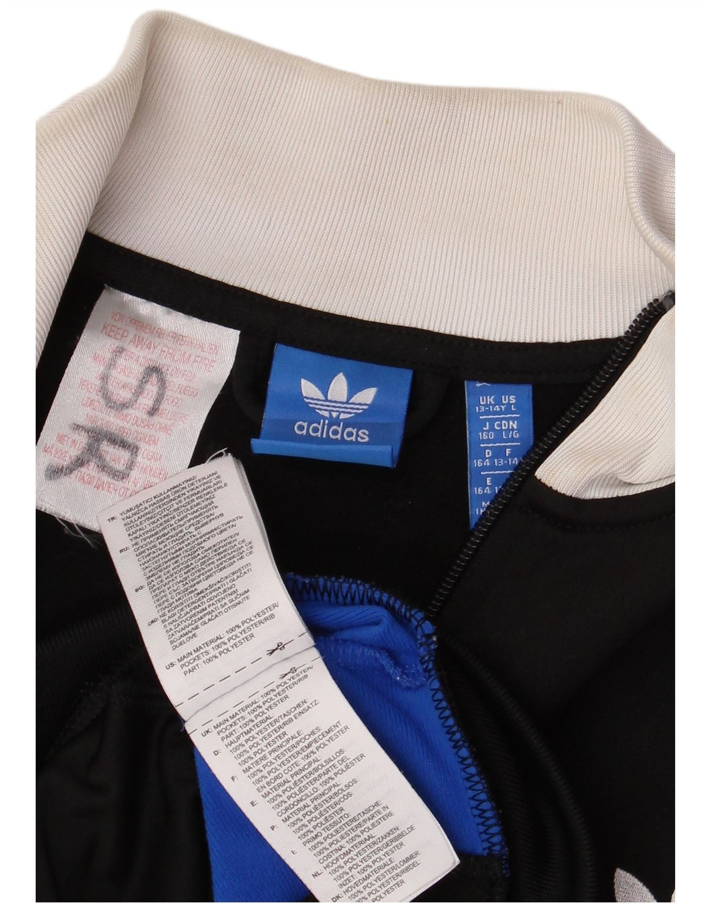 Μπουφάν ADIDAS Boys αθλητική φόρμα 13-14 ετών Μαύρο πολύχρωμο πολυεστέρα