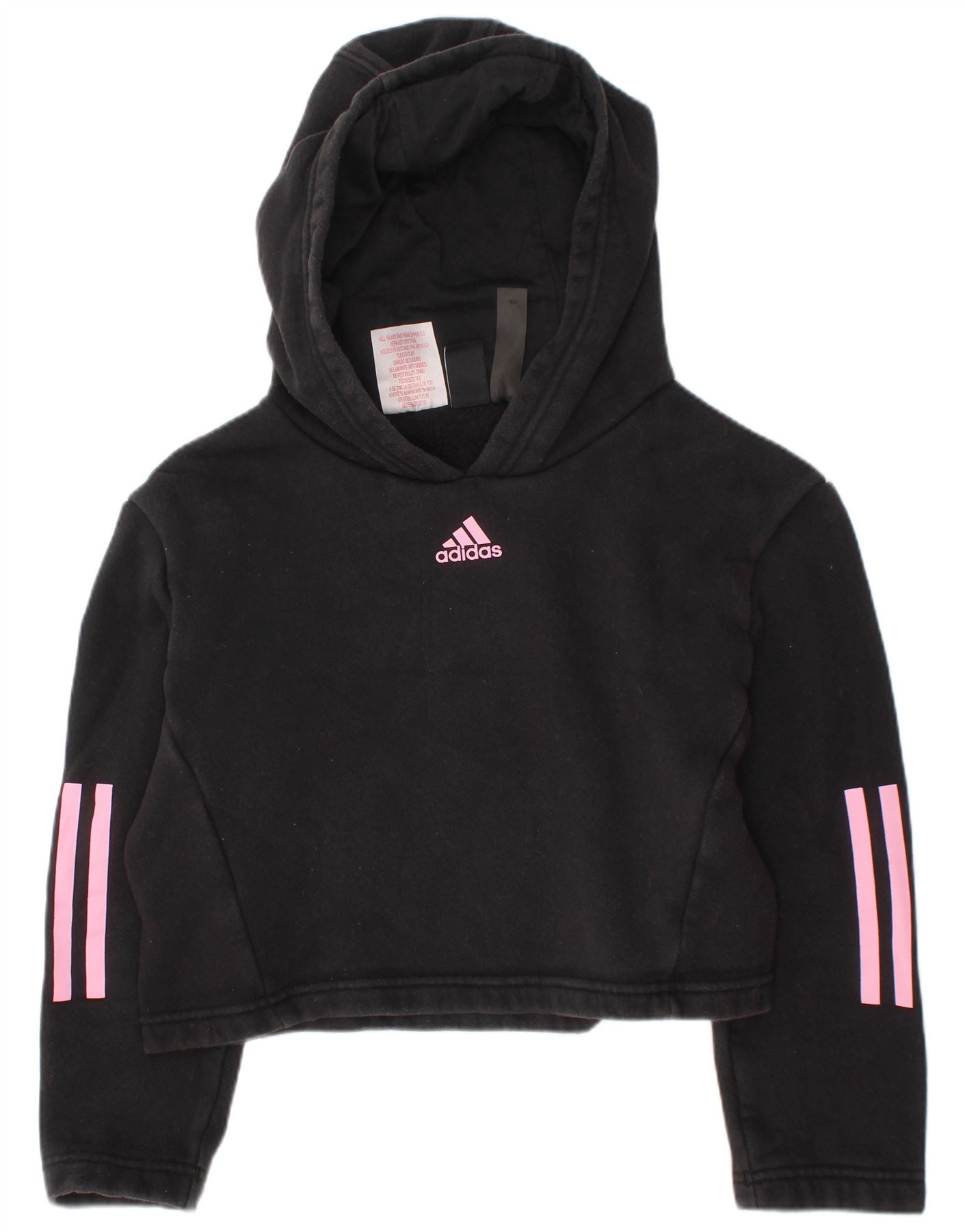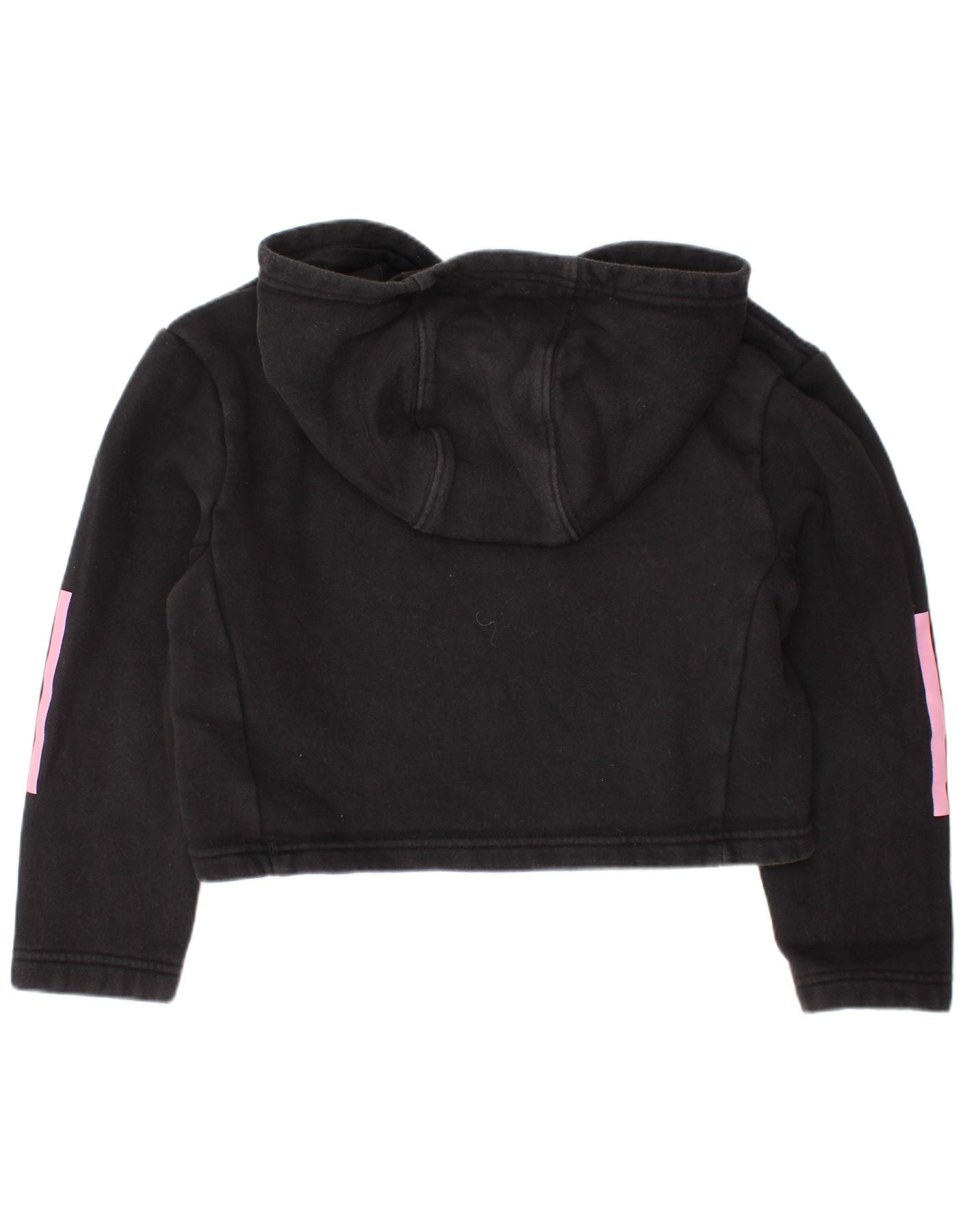 ADIDAS Girls Crop Hoodie Jumper 7-8 ετών Μαύρο Βαμβακερό