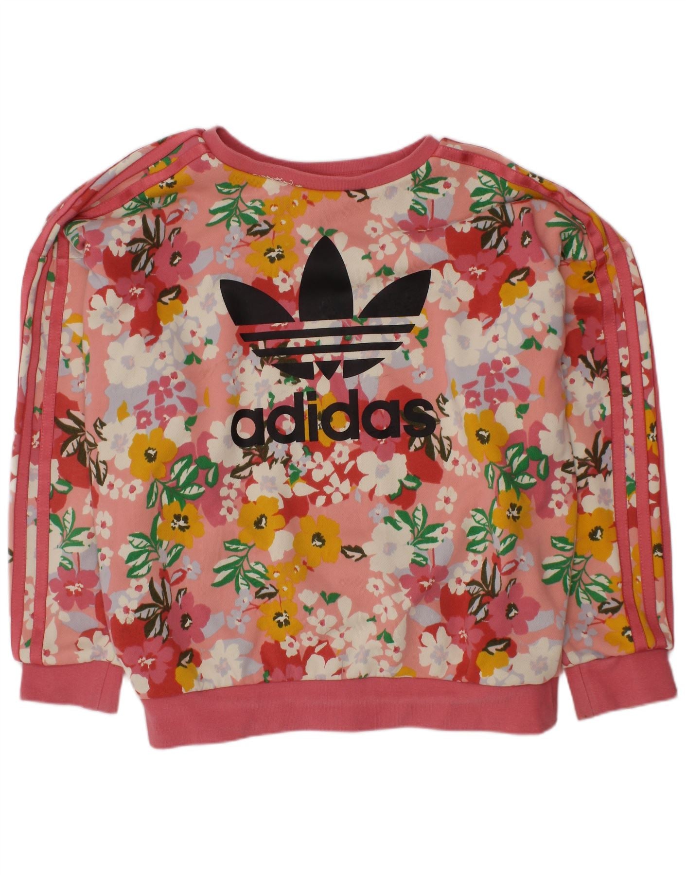 Γραφικό φούτερ ADIDAS για κορίτσια, 9-10 ετών, ροζ λουλουδάτο βαμβακερό