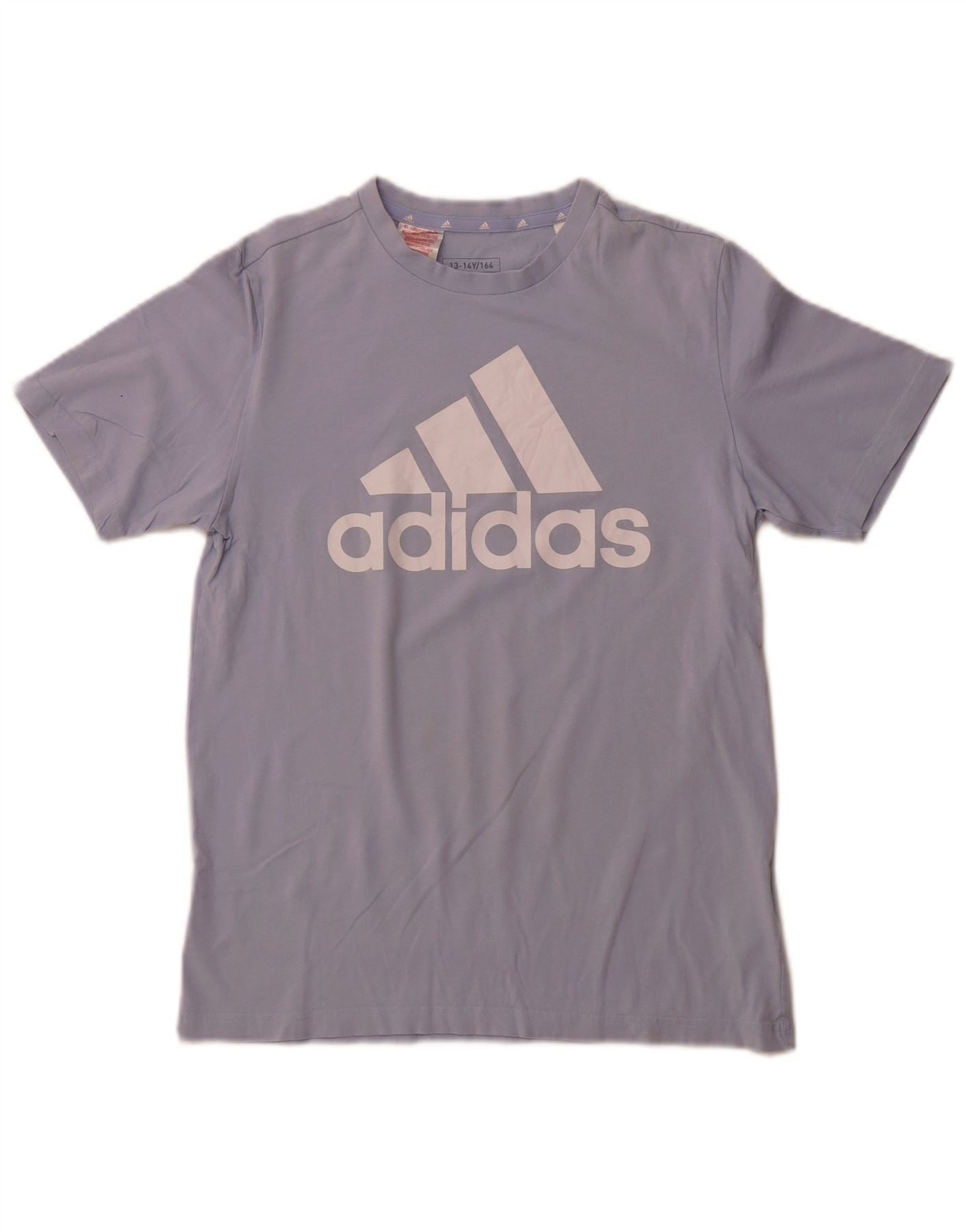 ADIDAS Girls Graphic T-Shirt Top 13-14 Years Blue Cotton
