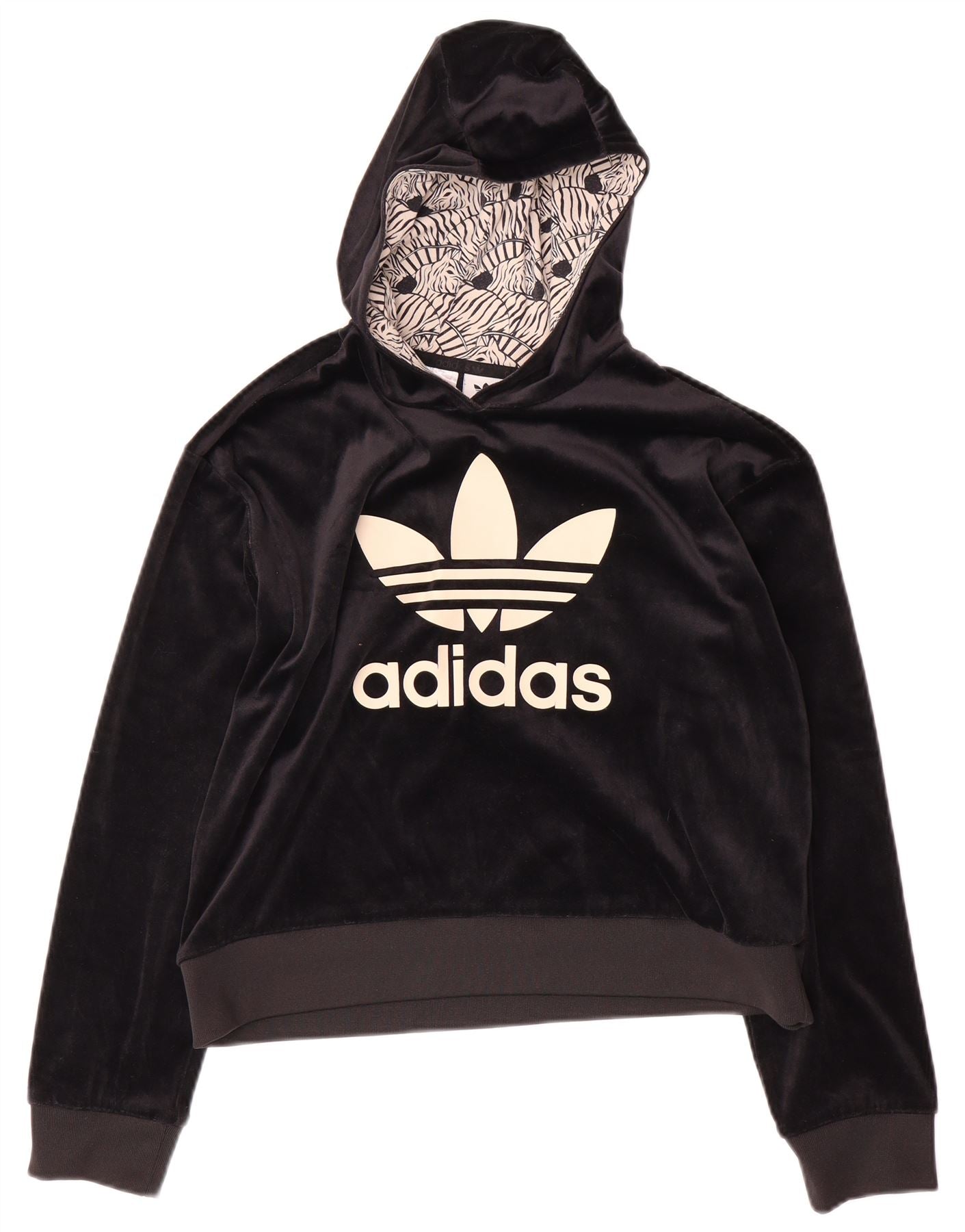 ADIDAS Girls Graphic Velor Hoodie Jumper 13-14 Years Black