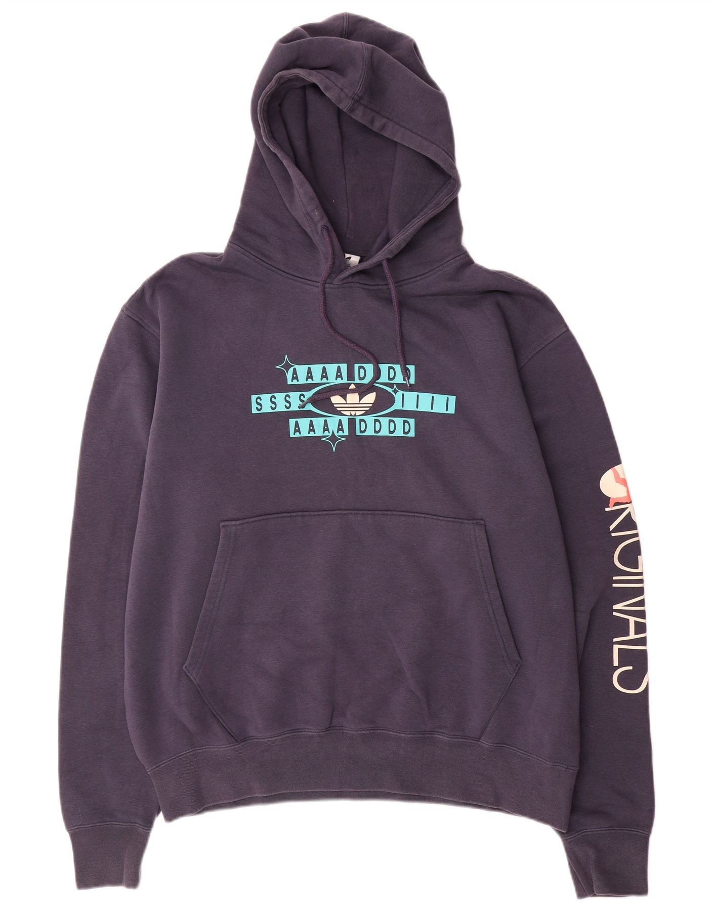 Ανδρικό γραφικό κουκούλα ADIDAS Μεγάλο μπλε βαμβακερό