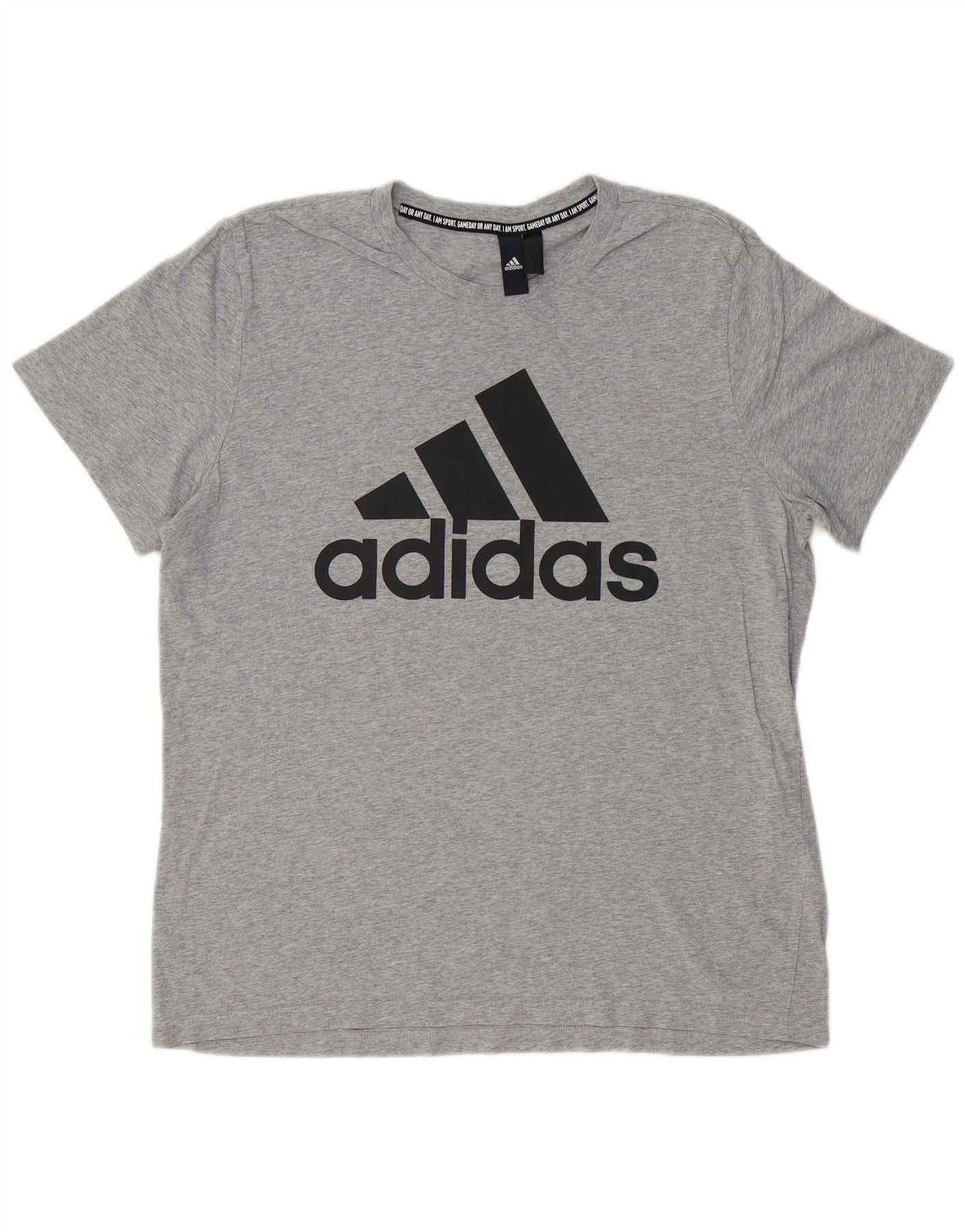Ανδρικό γραφικό μπλουζάκι ADIDAS Top μεγάλο γκρι βαμβακερό