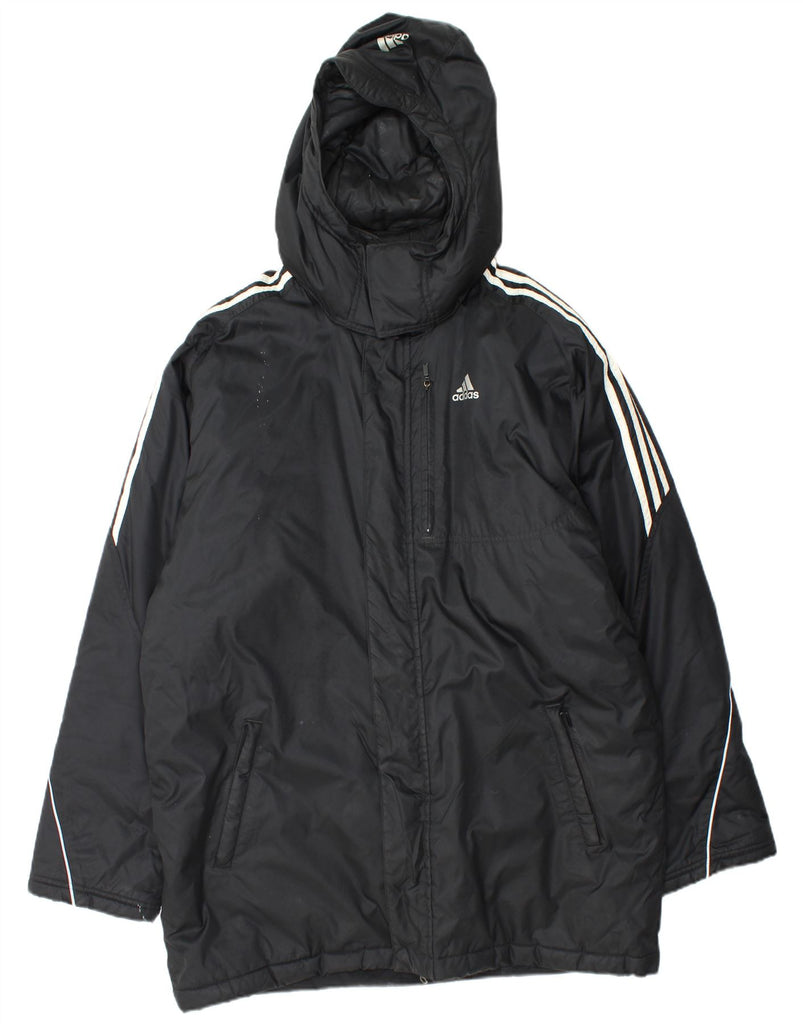 ADIDAS Mens Hooded Windbreaker Jacket UK 38 Medium Black Polyamide