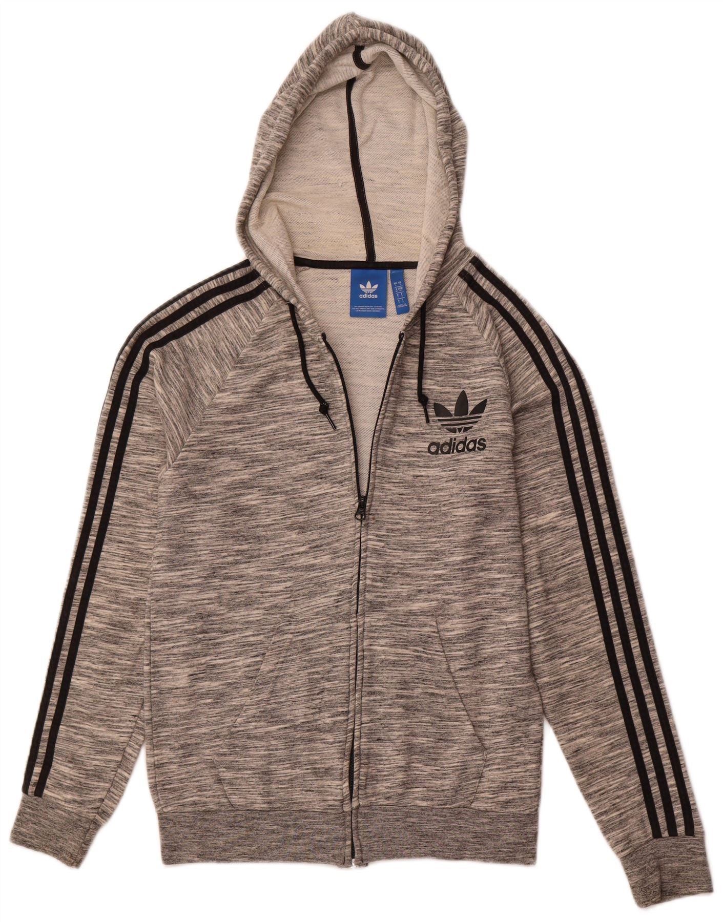 Ανδρικό πουλόβερ με κουκούλα με φερμουάρ ADIDAS από βαμβακερό γκρι μικρό