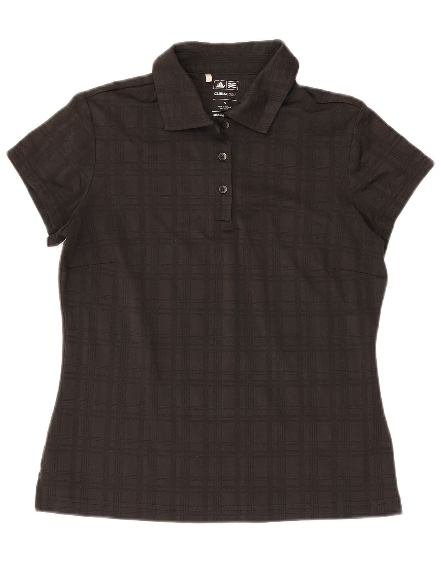 ADIDAS Womens Climacool Polo Shirt UK 10 Small Black Check Polyester