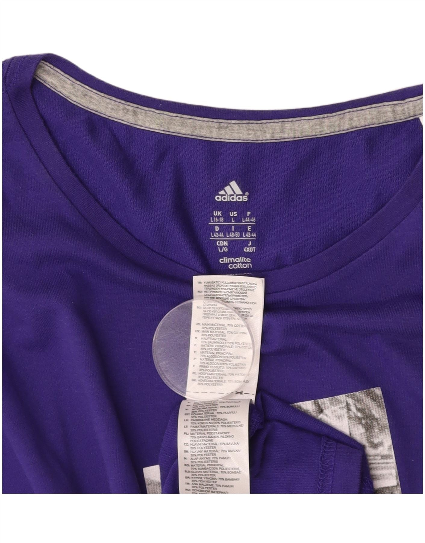 Home > Γυναικεία > Ρούχα Depop > Γυναικείο γραφικό μπλουζάκι ADIDAS Climalite Top UK 16/18 μεγάλο μωβ βαμβακερό