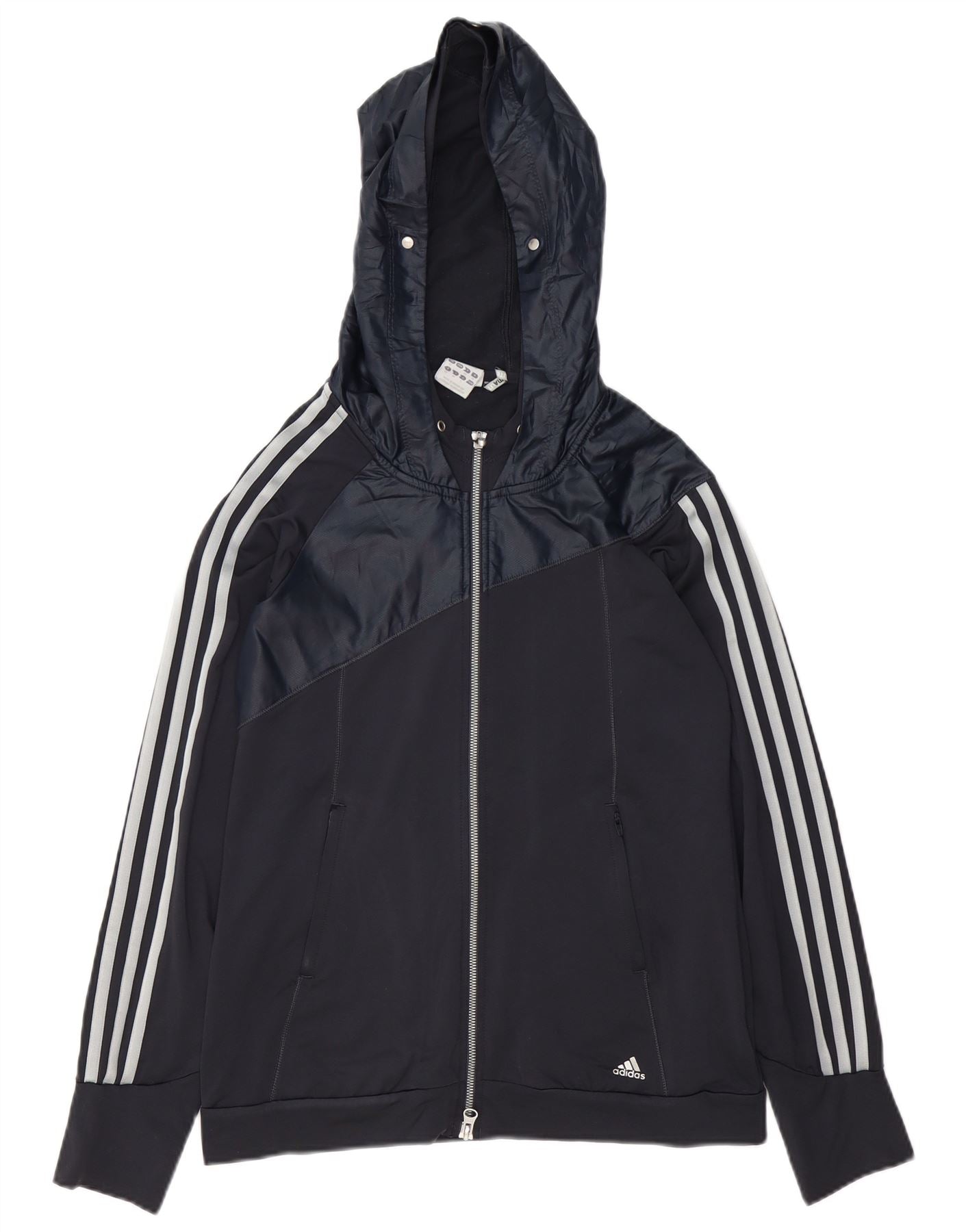 Γυναικεία αθλητική φόρμα Adidas Climalite Hooded Top Jacket UK 12 Medium Navy Blue