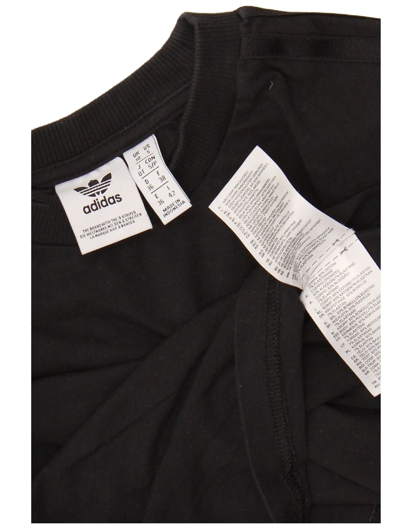 Γυναικείο Crop τοπ ADIDAS μακρυμάνικο UK 10 Small μαύρο βαμβακερό