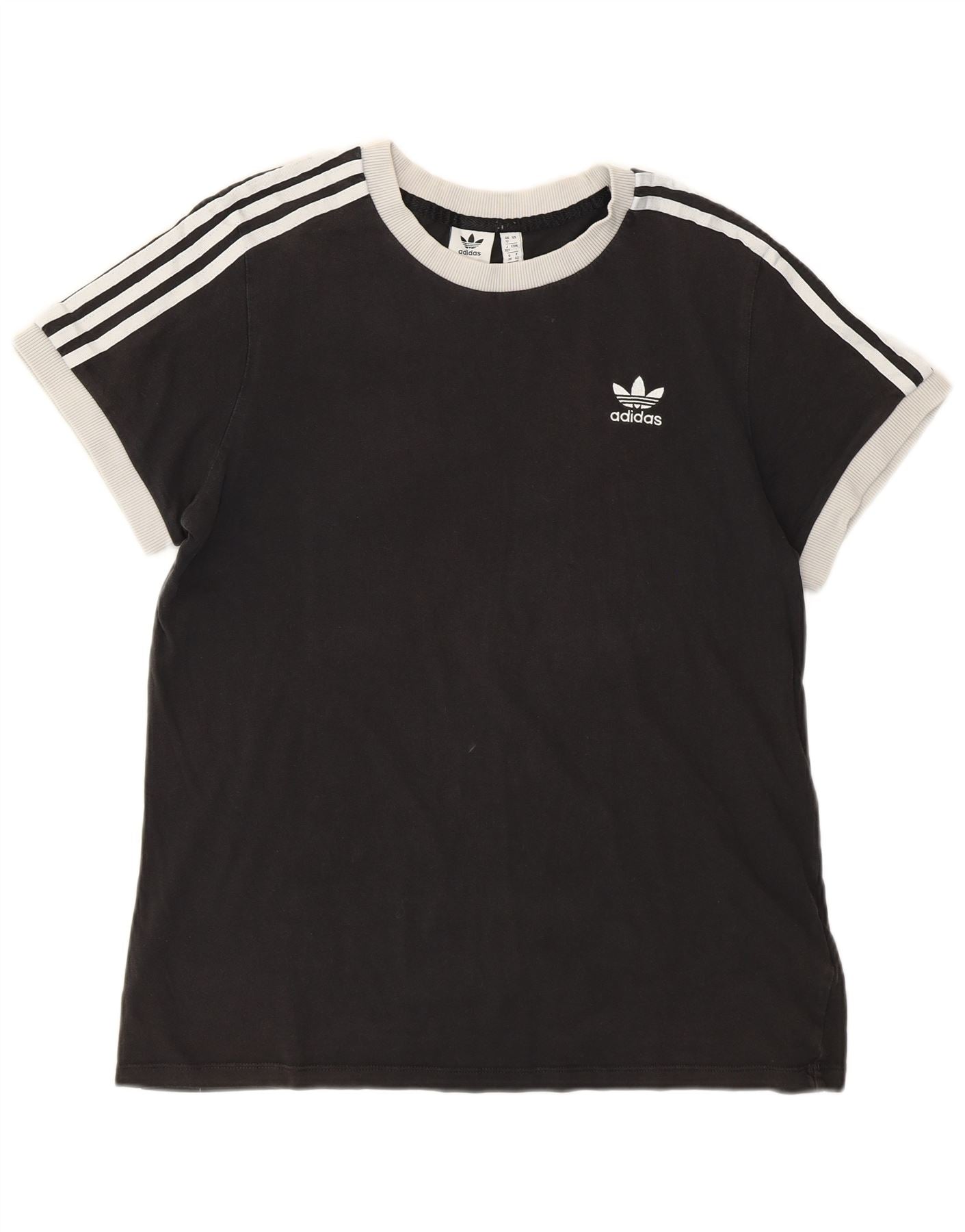 Γυναικείο γραφικό μπλουζάκι ADIDAS Τοπ UK 12 μεσαίο μαύρο βαμβακερό