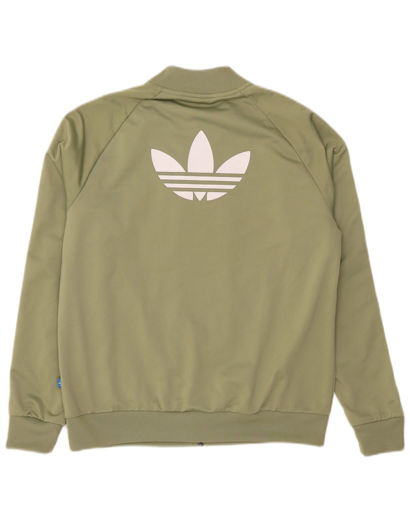 ADIDAS Womens Graphic Tracksuit Top Jacket UK 16 Large Khaki Polyester