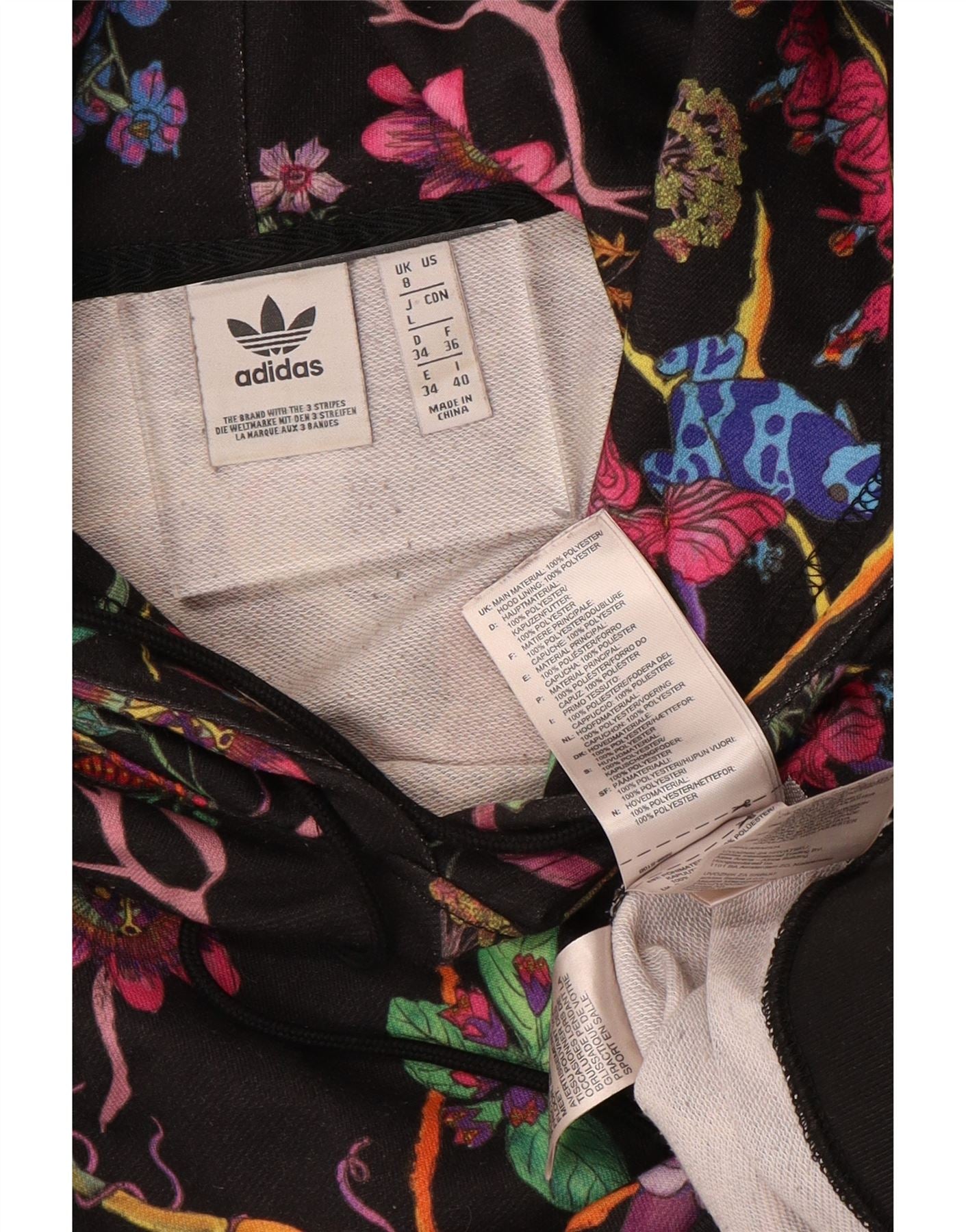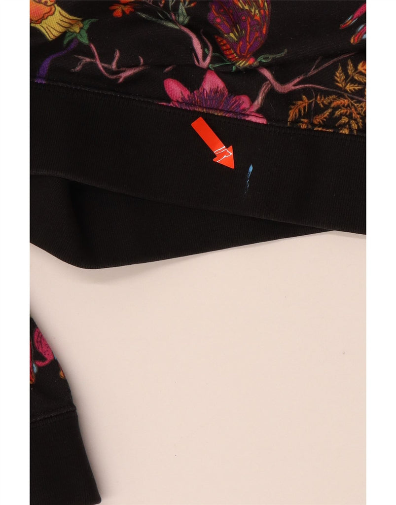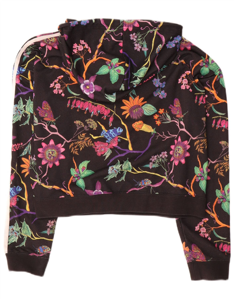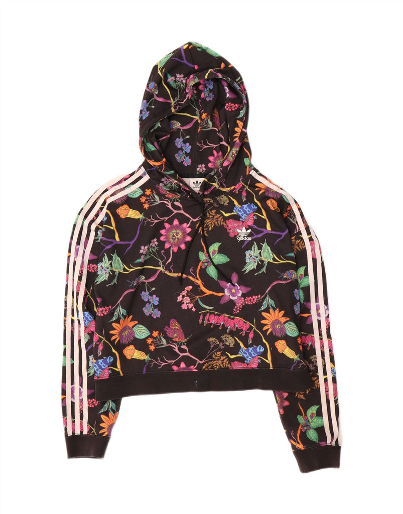 Γυναικεία ADIDAS Oversized Crop Hoodie Jumper UK 8 Small Black Floral