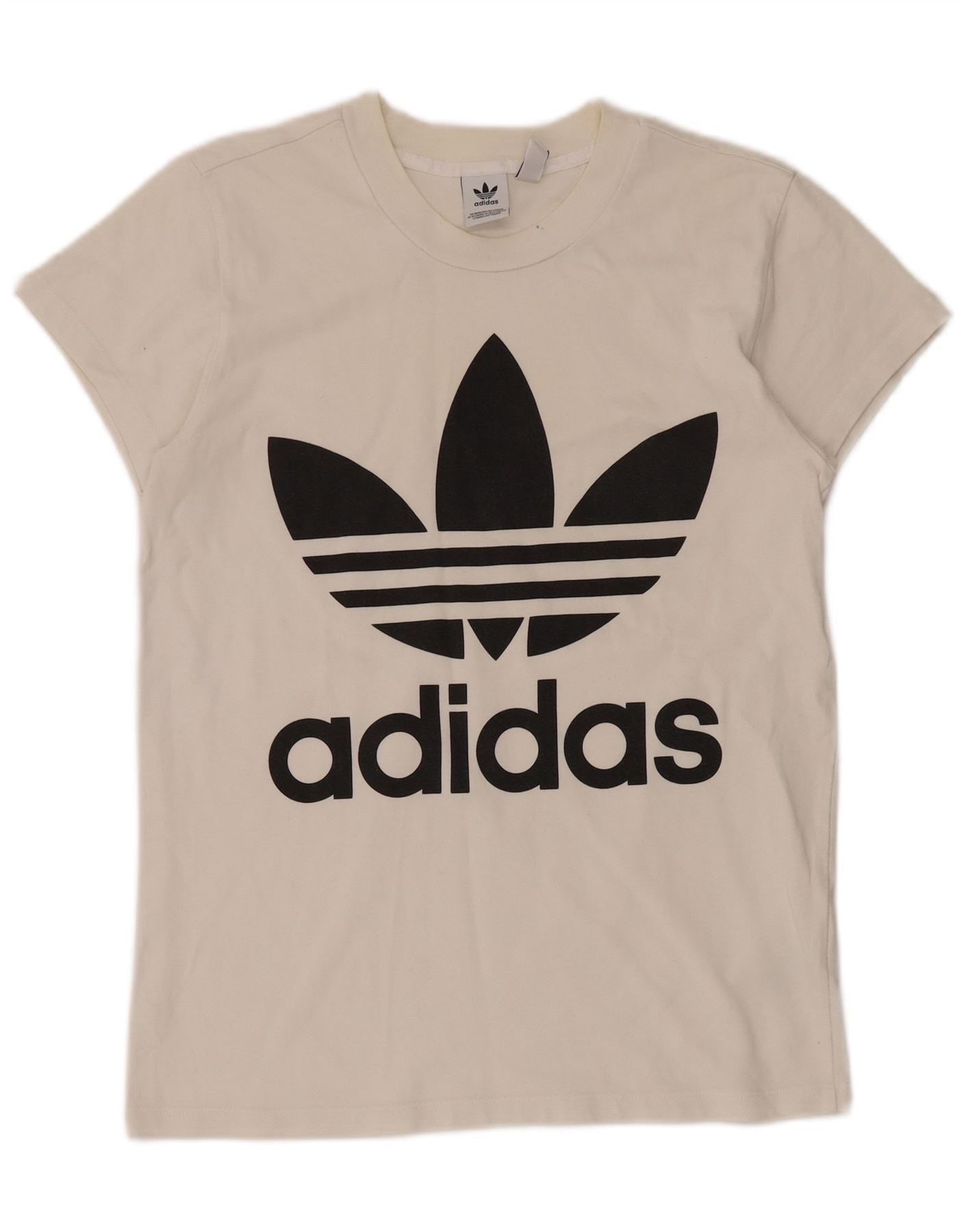 Home > Γυναικεία > Ρούχα Depop > Γυναικείο γραφικό μπλουζάκι μεγάλου μεγέθους ADIDAS UK 2 2XS λευκό βαμβακερό