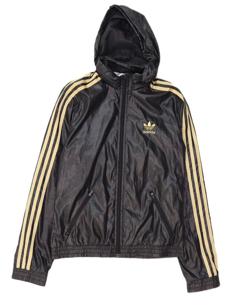 ADIDAS Womens Oversized Hooded Tracksuit Top Jacket EU 36 Small Black