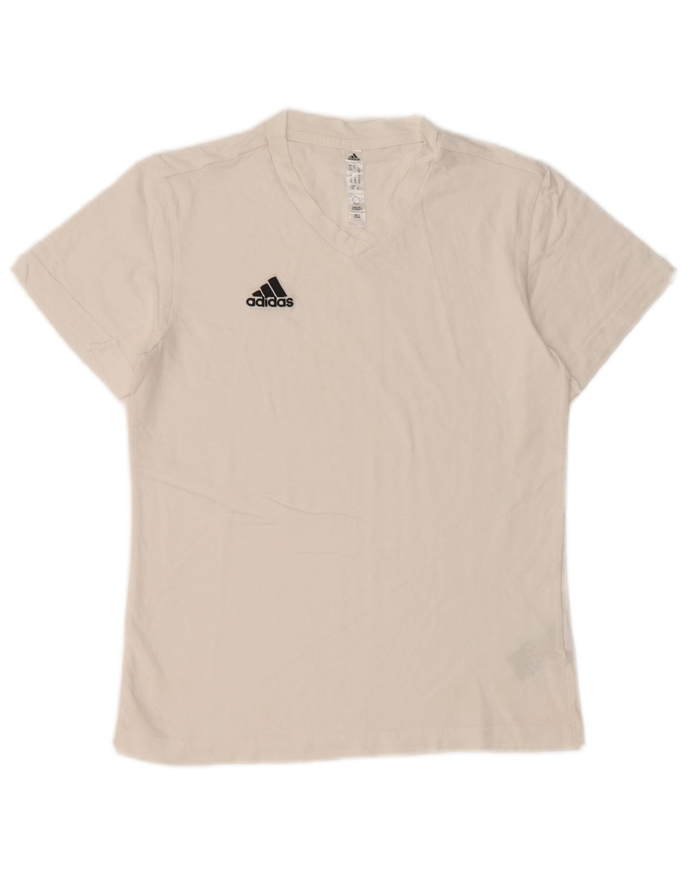 ADIDAS Γυναικείο T-Shirt Top UK 8/10 Μικρό λευκό βαμβακερό
