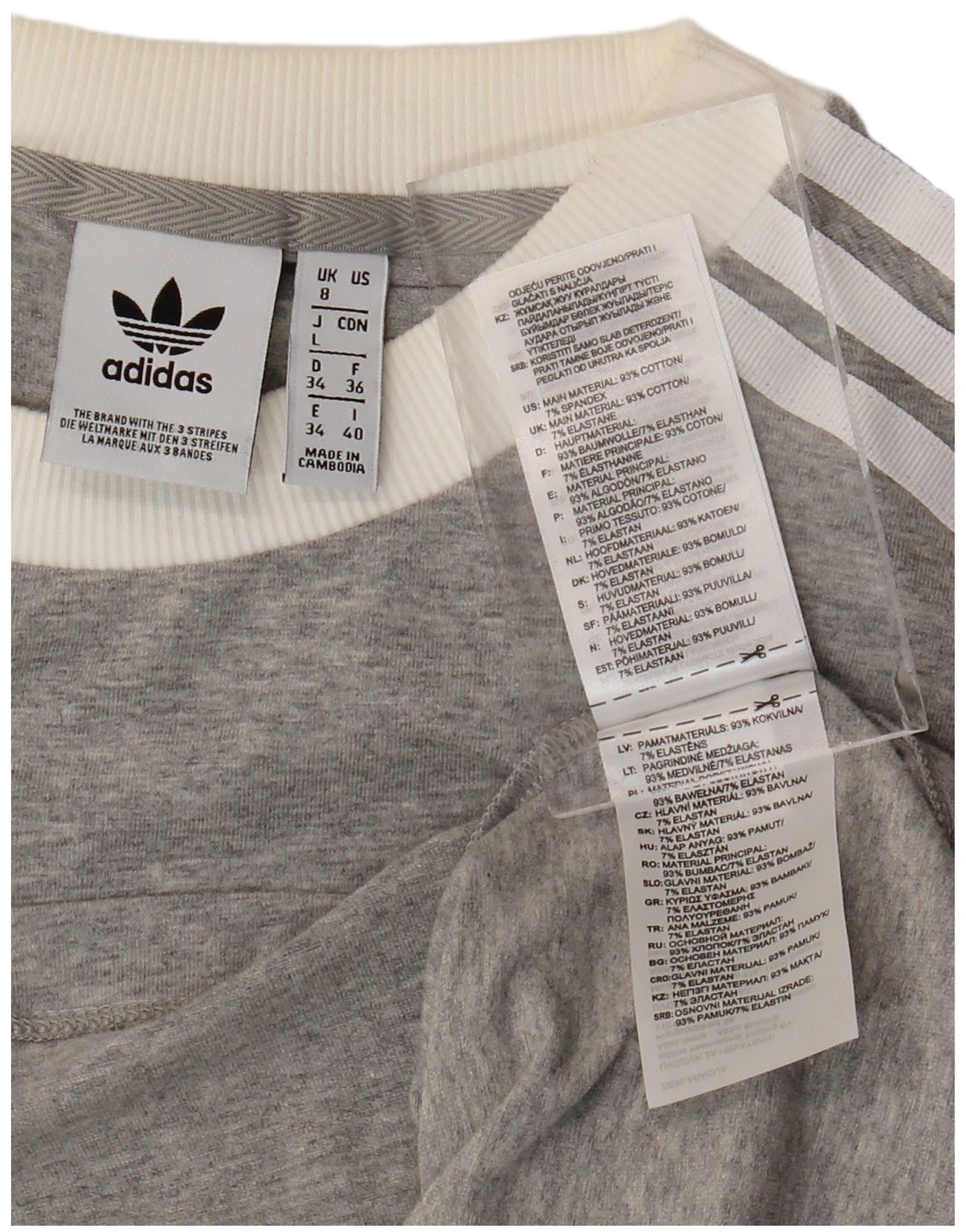 Γυναικείο τοπ ADIDAS μακρυμάνικο UK 8 Μικρό βαμβακερό γκρι φλύκταινα