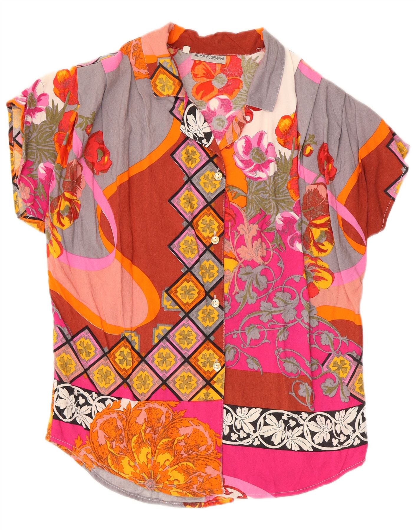 ALBA FORNARI Γυναικείο πουκάμισο μεγάλου μεγέθους UK 10 Μικρό πολύχρωμο συνονθύλευμα