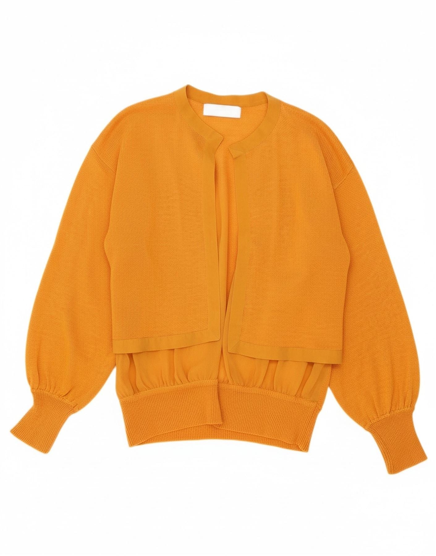 - AI Description: This Alberta Ferretti womens Cardigan Sweater is crafted from a lightweight linen blend knit. Its fabric offers a delicate, subtly sheer texture, perfect for layering. The open front design allows for relaxed styling. A round neckline and long sleeves maintain a classic, comfortable profile. The vibrant orange hue adds a bold, warm touch, making it a striking piece for any wardrobe. Its relaxed fit ensures effortless elegance.