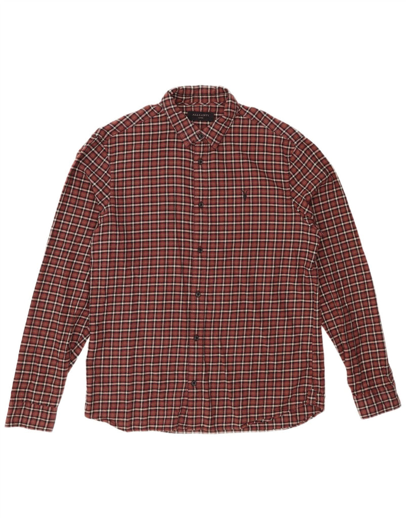 Ανδρικό φανελένιο πουκάμισο ALL SAINTS Μεγάλο μπορντό βαμβακερό καρό