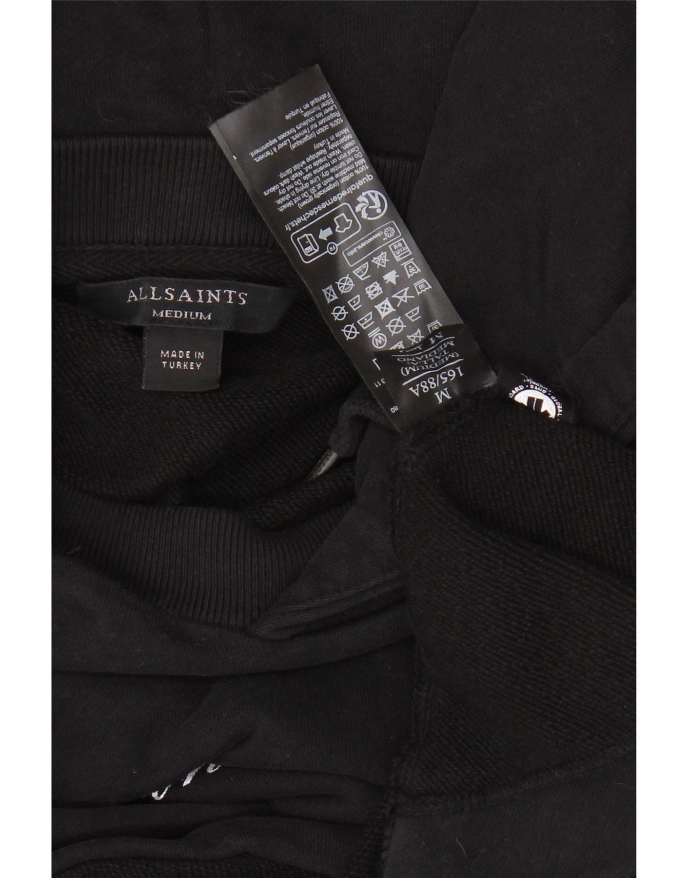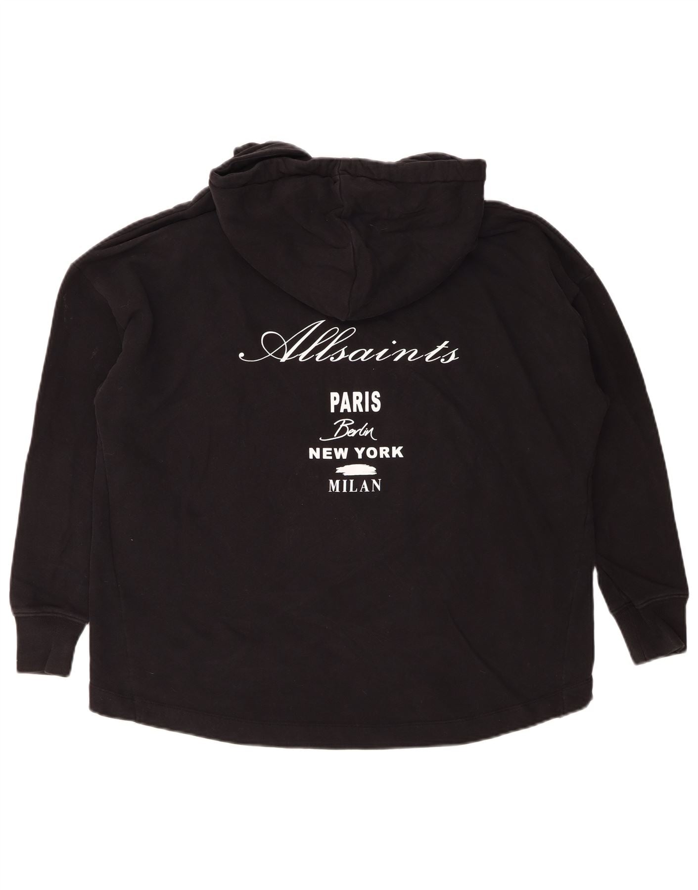 ALL SAINTS Mens Loose Fit Graphic Hoodie Jumper Medium Black Cotton