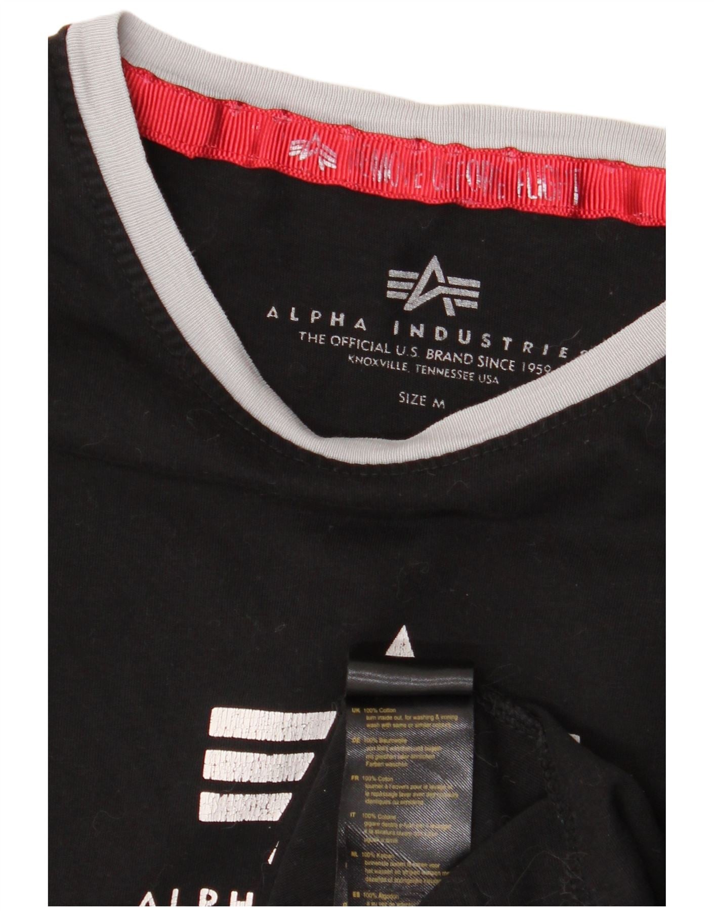 Γυναικείο γραφικό μπλουζάκι ALPHA INDUSTRIES Top UK 14 μεσαίο μαύρο βαμβακερό