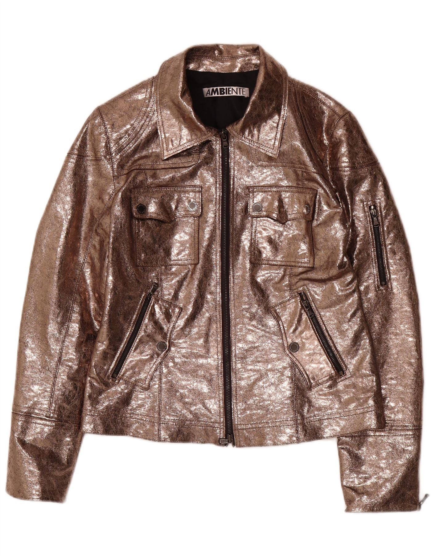 AMBIENTE Γυναικείο Βοηθητικό μπουφάν από συνθετικό δέρμα UK 14 μεγάλο καφέ πολυεστέρας