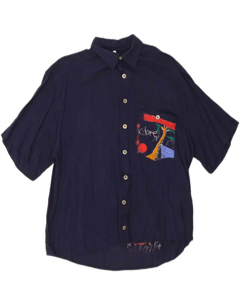 ANGELO LITRICO Ανδρικό πουκάμισο με αφηρημένο σχέδιο UK 39/40 Medium Navy Blue