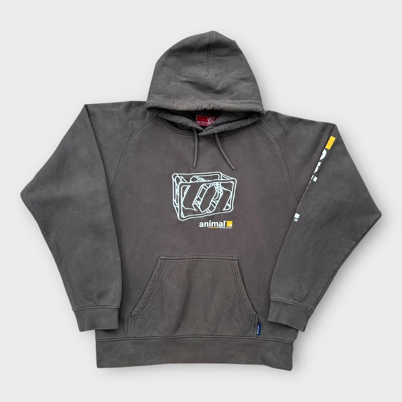 Αρχές της δεκαετίας του 2000 Y2K Κεντημένο φούτερ με φούτερ με κουκούλα σε καφέ με κέντημα και στάμπα στο μπράτσο
