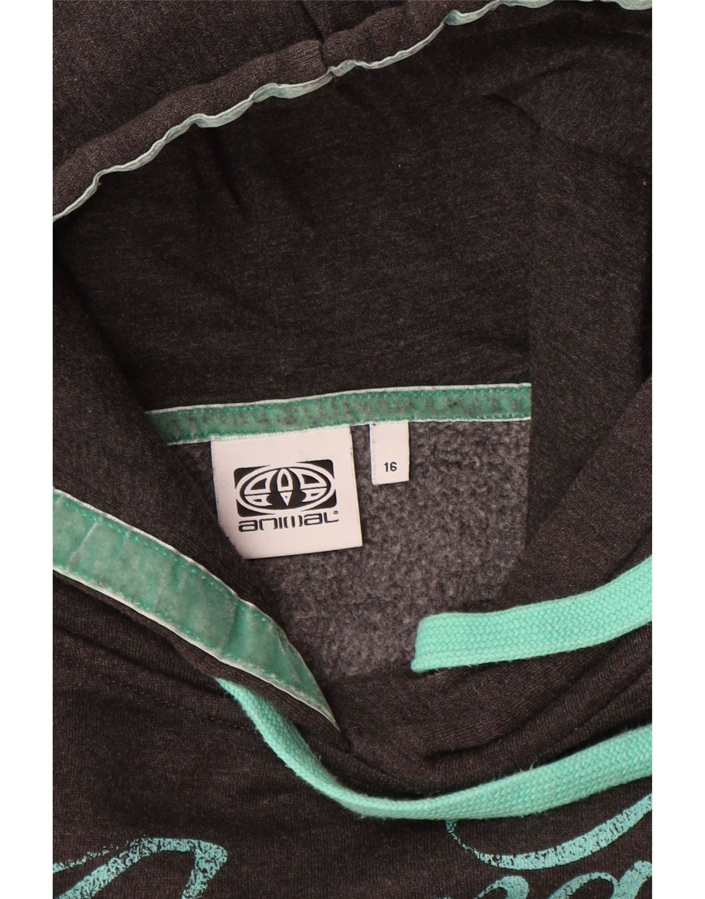 ANIMAL Womens Graphic Hoodie Jumper UK 16 Large Grey Cotton
