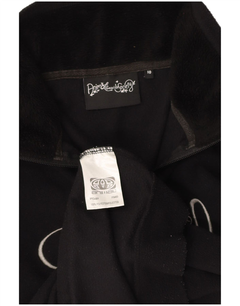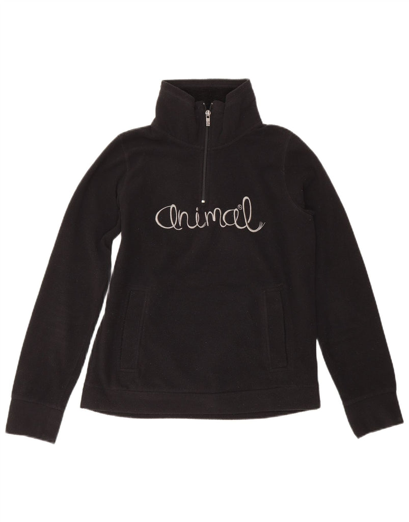ANIMAL Womens Graphic Zip Neck Fleece Jumper UK 10 Small Black Polyester