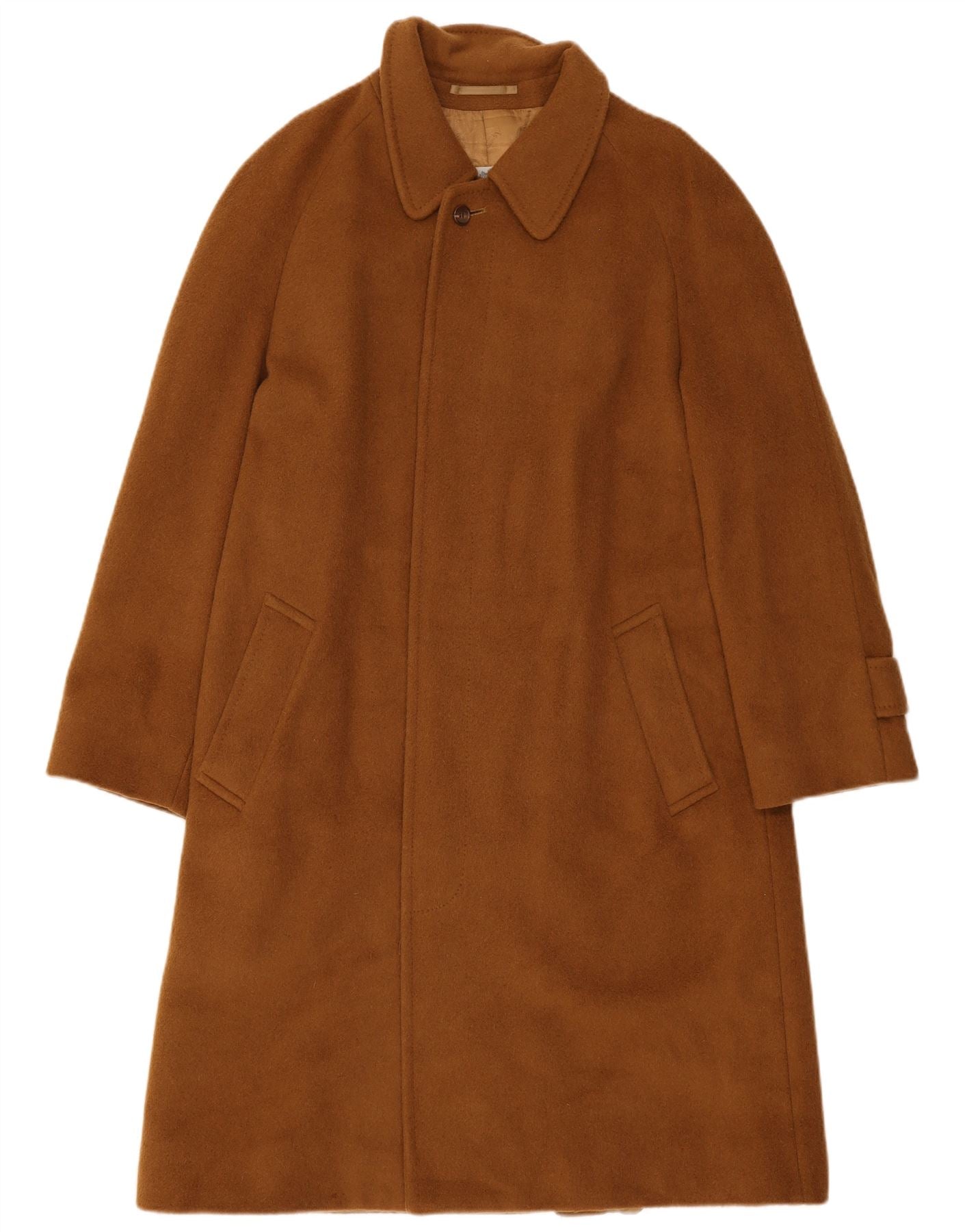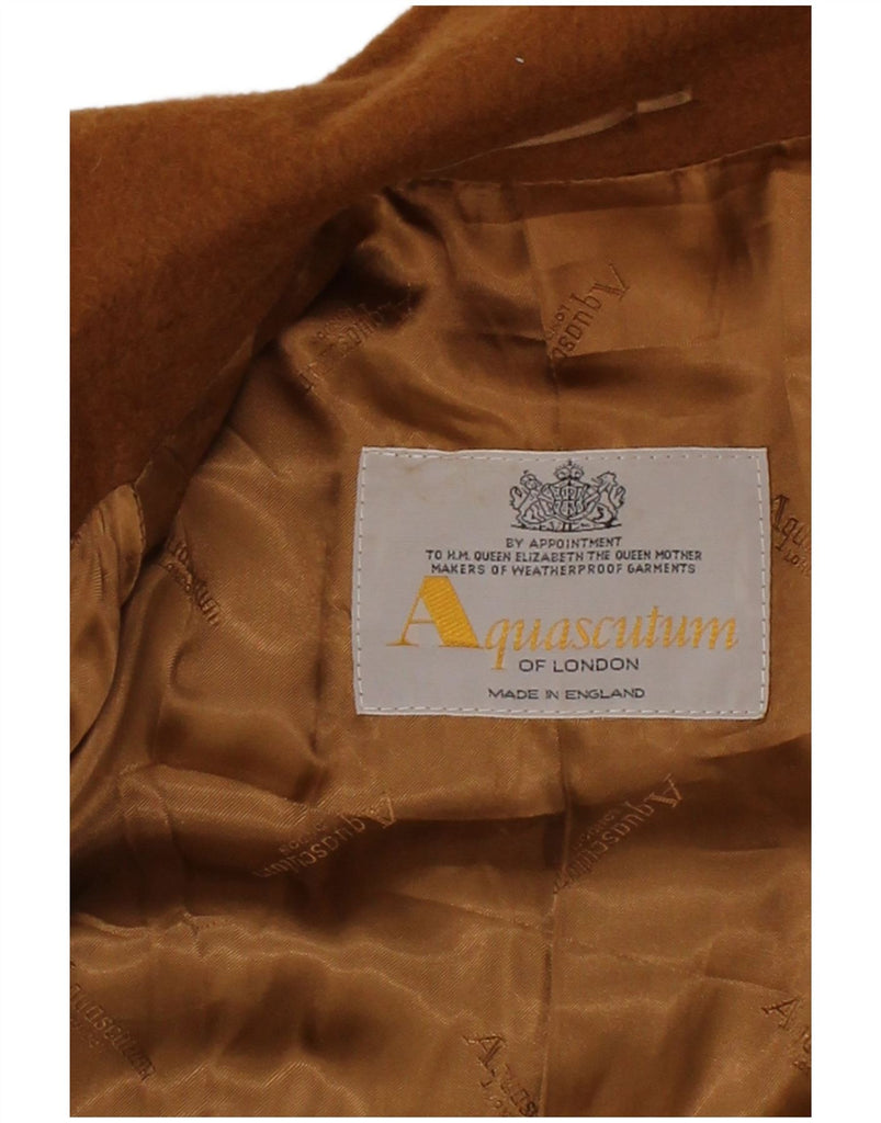 - AI Description: This Aquascutum womens overcoat is crafted from luxurious brown woven wool. It features a classic collared neckline and long sleeves. The regular fit offers a timeless silhouette. A button closure provides a refined finish. Practical pockets add functionality. This piece embodies classic British elegance, perfect for sophisticated layering.