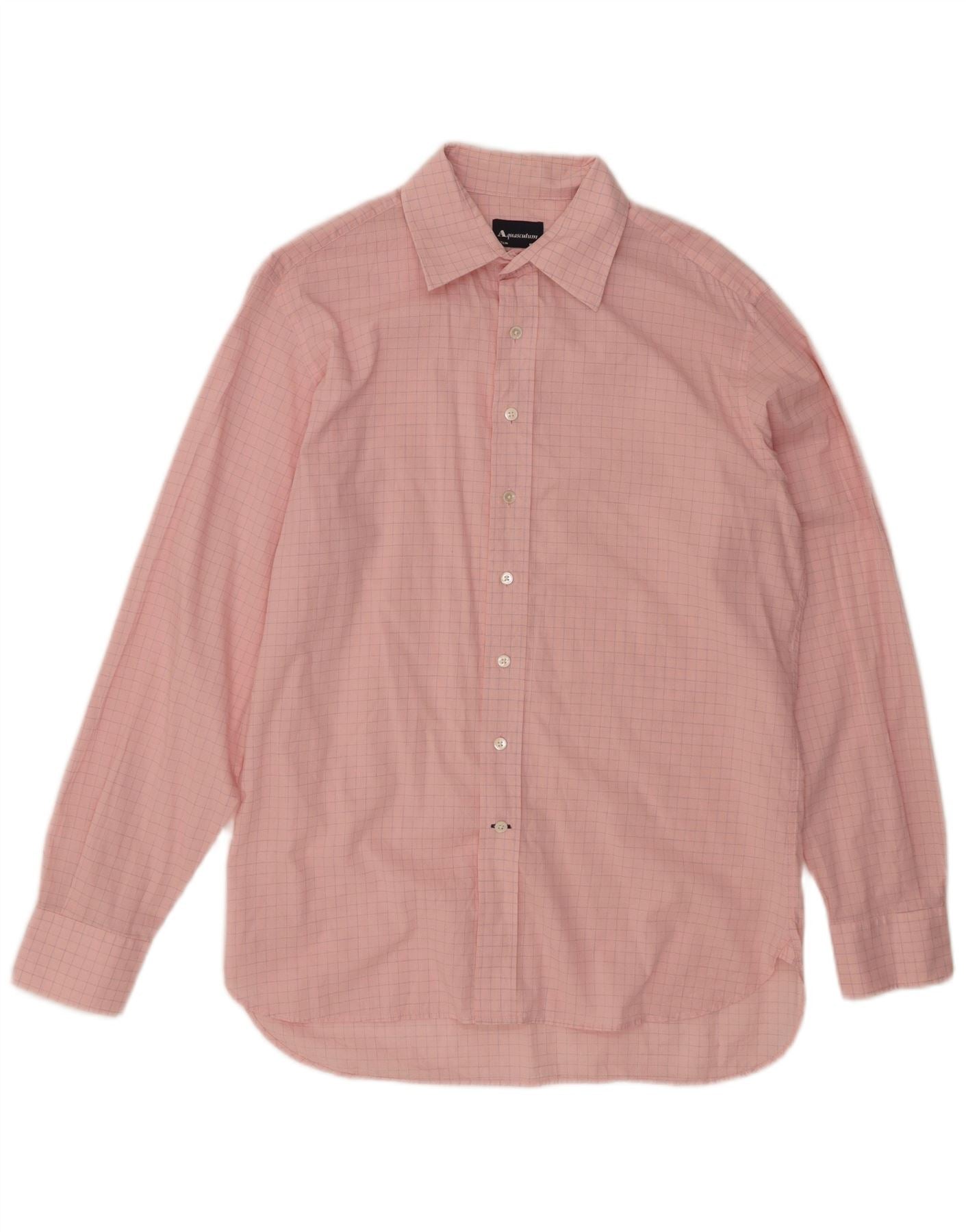 AQUASCUTUM Mens Slim Fit Shirt Size 16 1/2 Large Pink Check Cotton