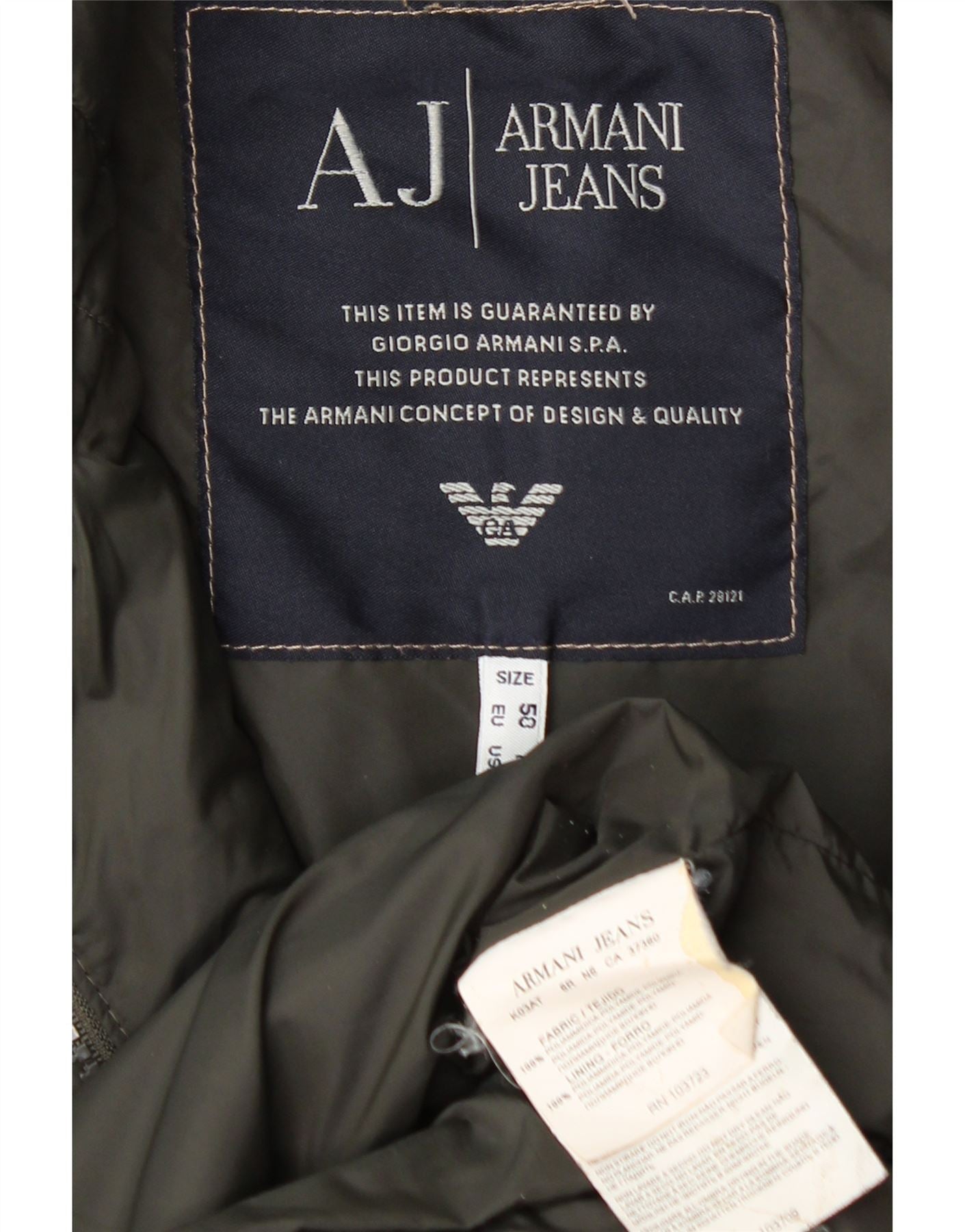 ARMANI JEANS Ανδρικό μπουφάν με επένδυση UK 36 Small Khaki Polyamide