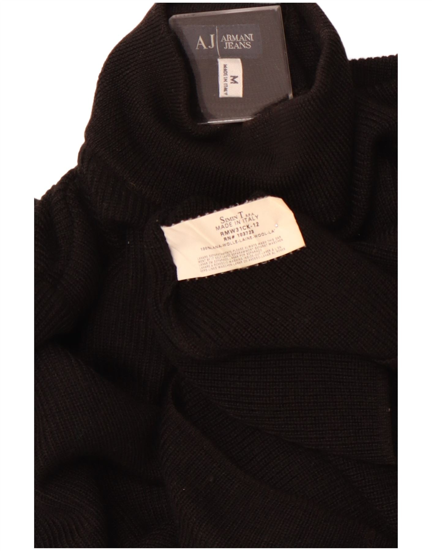 ARMANI JEANS Ανδρικό πουλόβερ με λαιμό χελώνα, μεσαίο μαύρο μαλλί